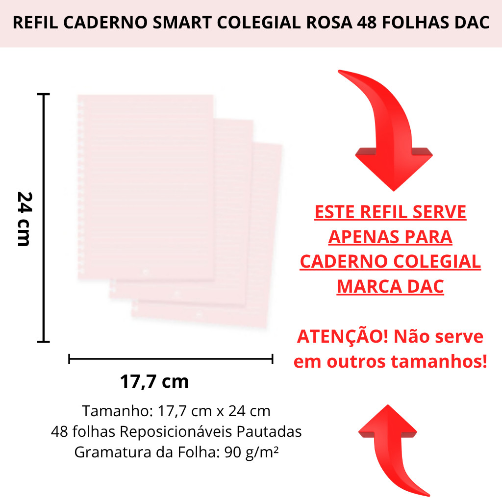 Refil Caderno Smart Colegial Rosa 48 Folhas DAC