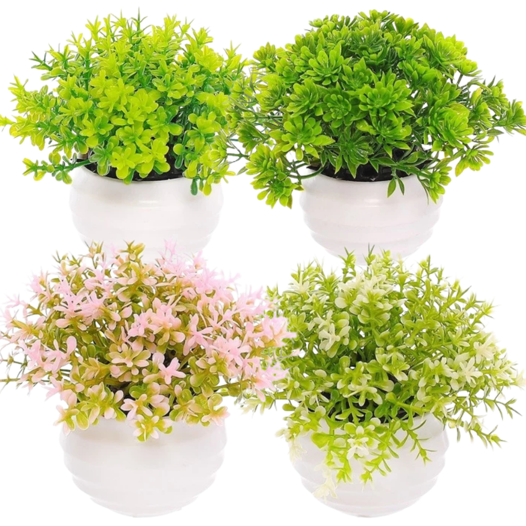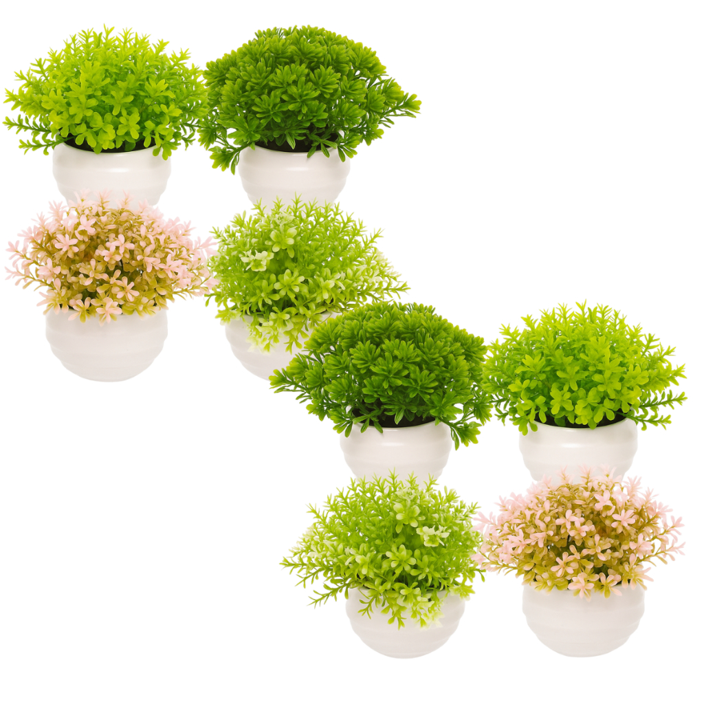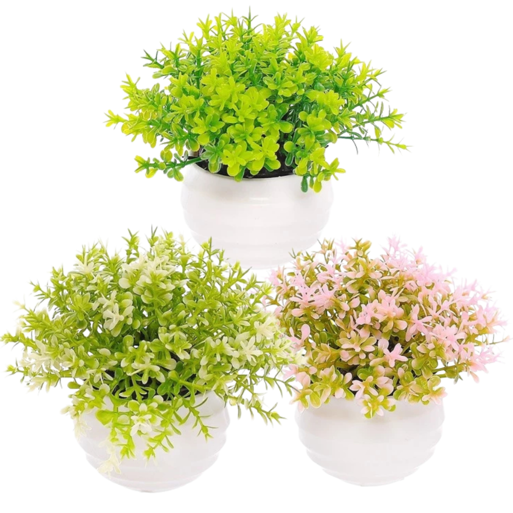 Kit Vasinhos Planta Artificial Flores Decorativos Branco Decoração Rack Sala Banheiro Cachepot