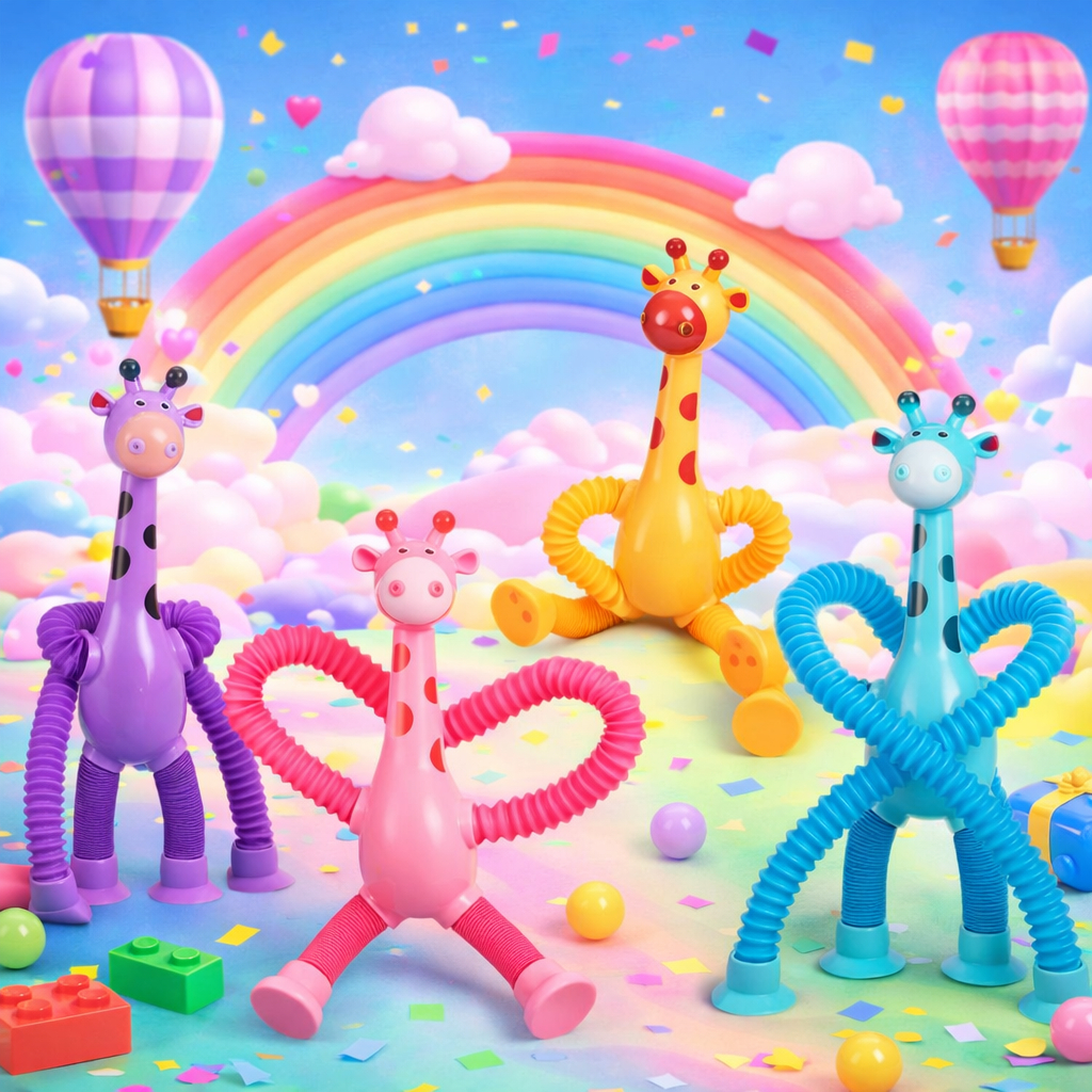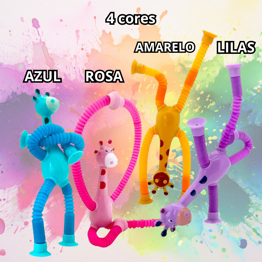 Kit 4 Girafas Pop It Tubo Led Estica e Gruda Brinquedo Divertido Infantil Lembrancinha Ventosa