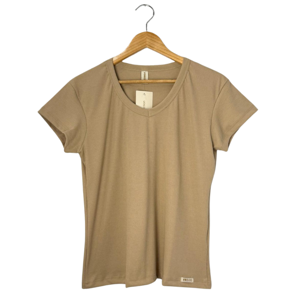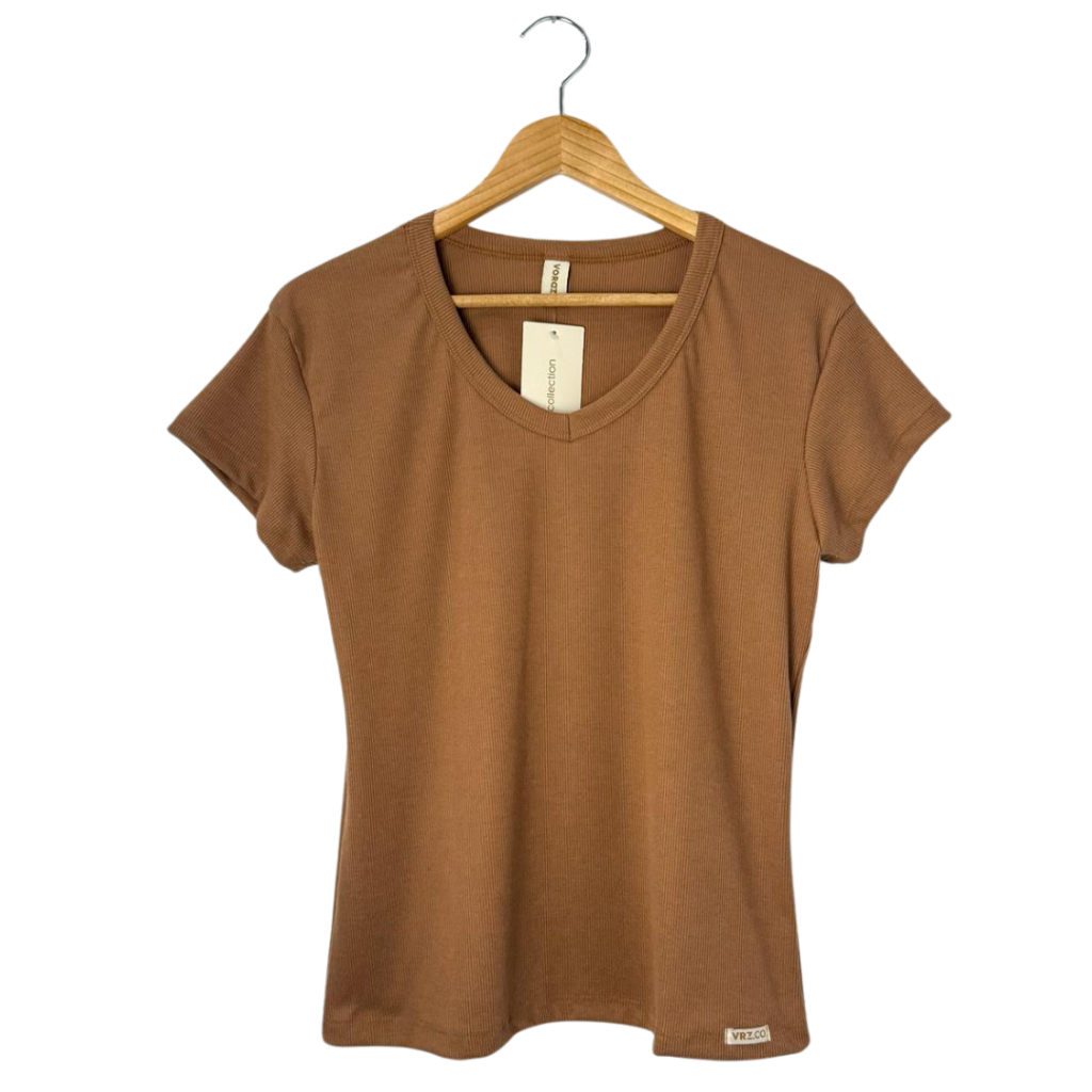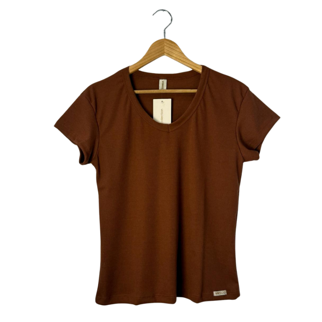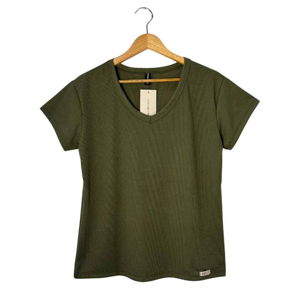 Blusa Feminina Ribana Canelada Casual Moderna Blogueira Gringa Básica Decote V 2080