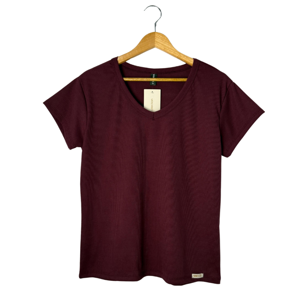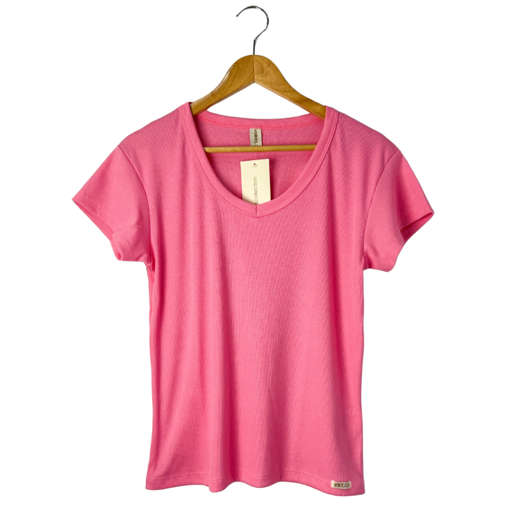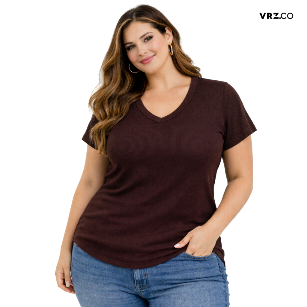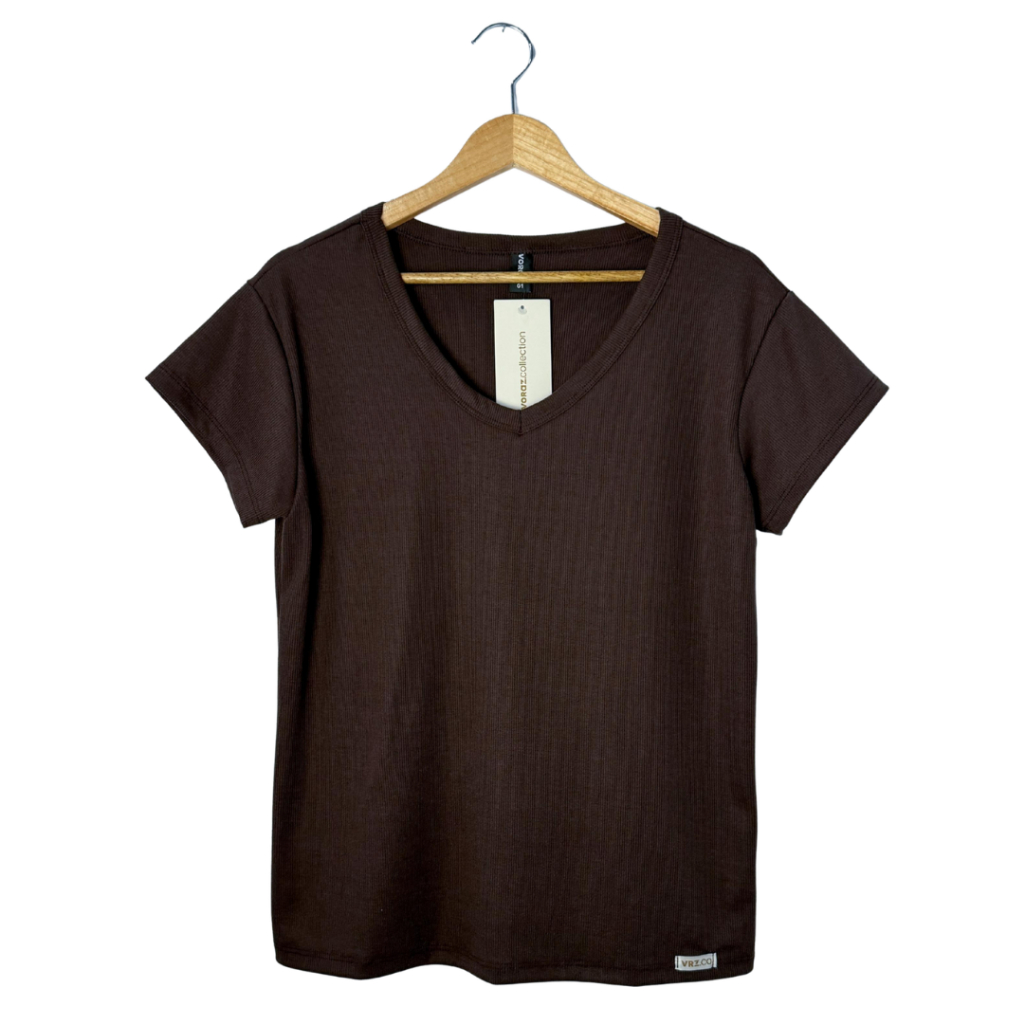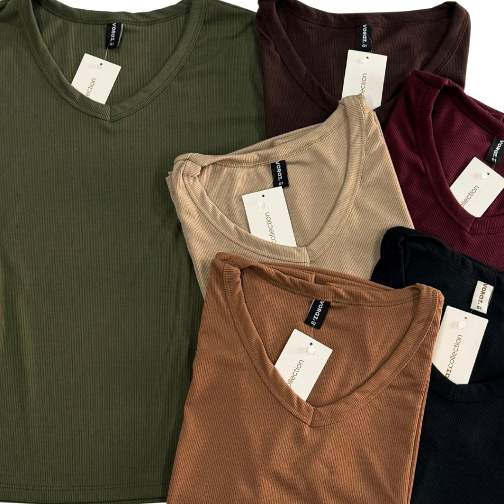 Blusa Feminina Ribana Canelada Casual Moderna Blogueira Gringa Básica Decote V 2080
