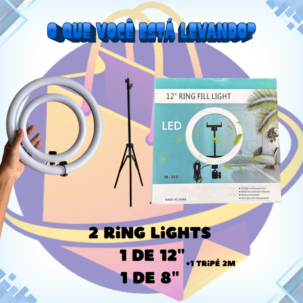 Ring Light LED 8/10/12 Polegadas Profissional com Tripé e Suporte Celular Luz Maquiagem Live YouTube TikTok 3 Cores