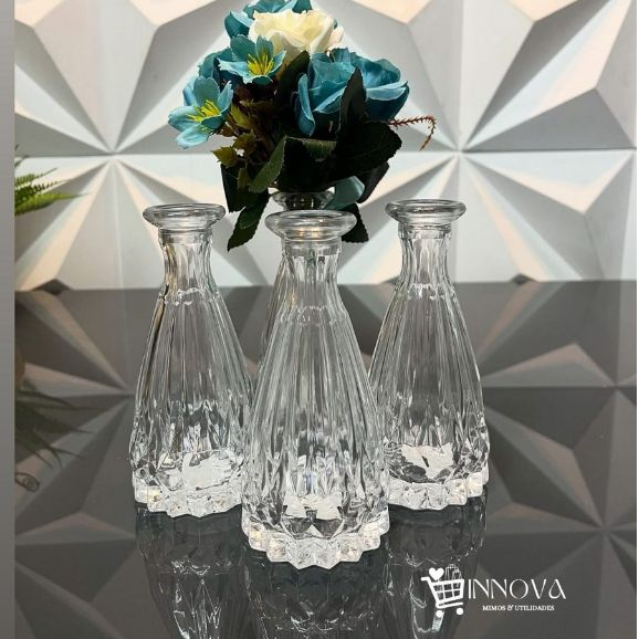 Kit Vaso de Vidro Decorativo Diamante para Casamento 100ml