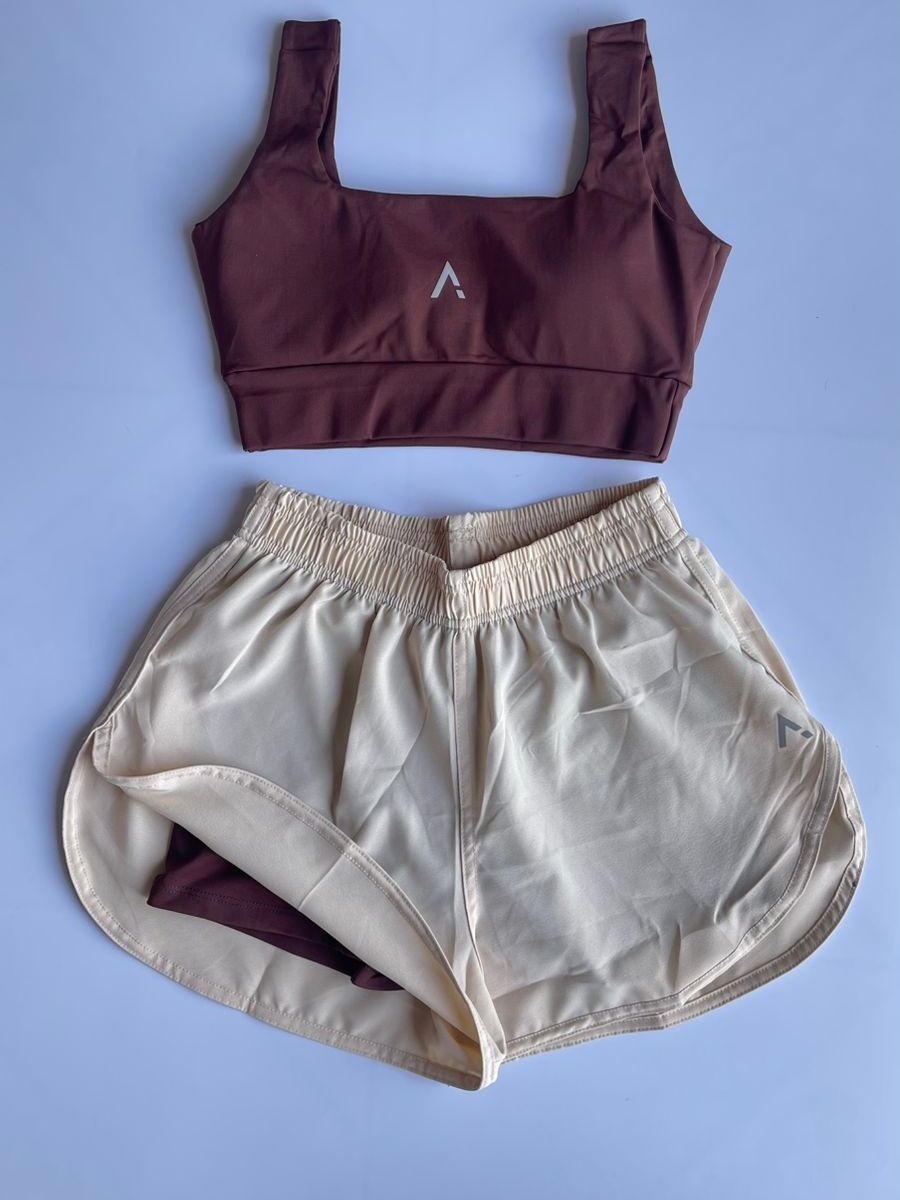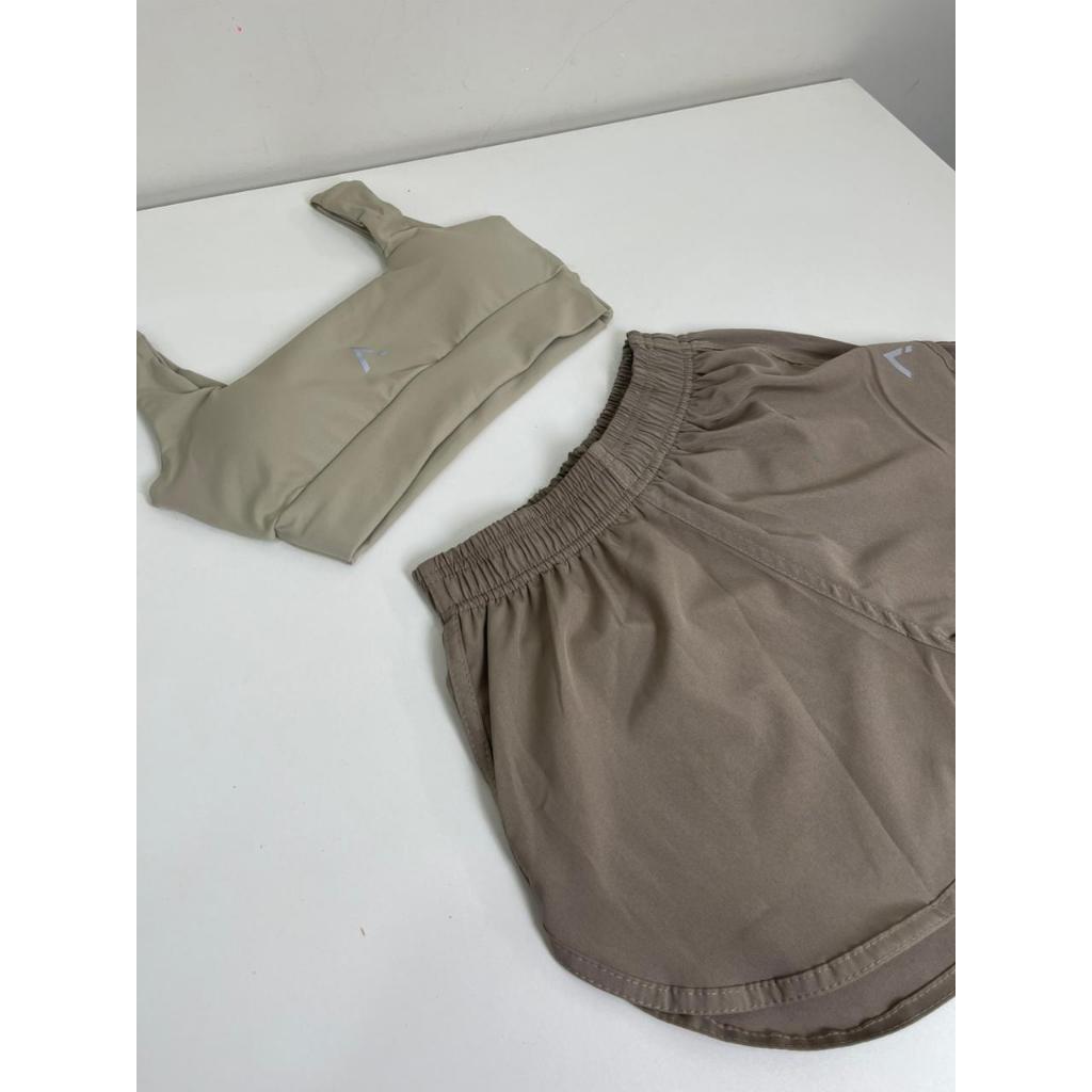 Conjunto de Short Duplo e Top em poliamida e Tactel Fitness Slim Fit