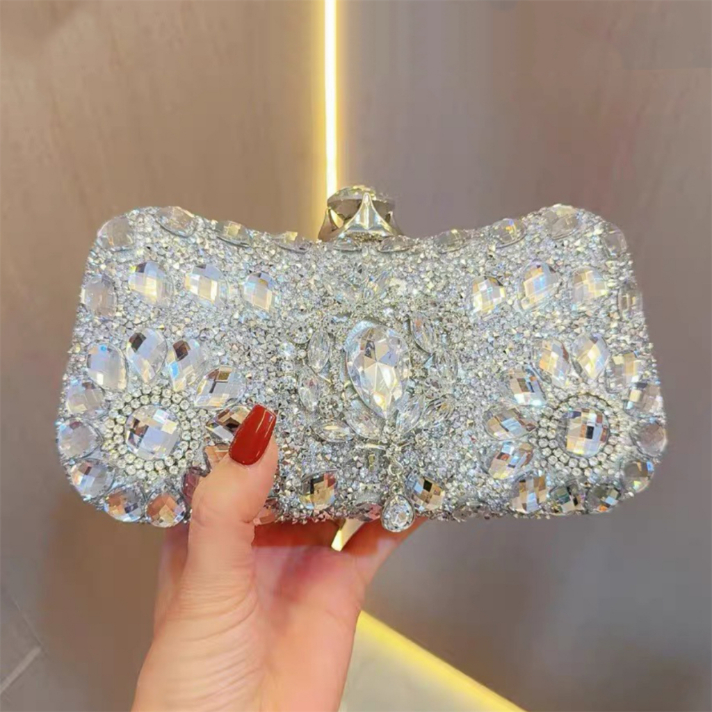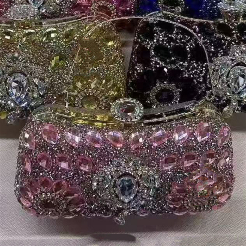 Juzia Bolsas Bolsa feminina Clutch festa de mão diamante brilho joias fecho alça corrente alça de mão cravejado pedrinha