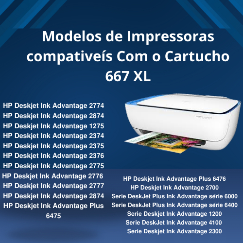 Promoção Kit Cartucho 667XL Original Preto e Colorido Para Impressoras Deskjet 2376, 2774, 2776, 6476