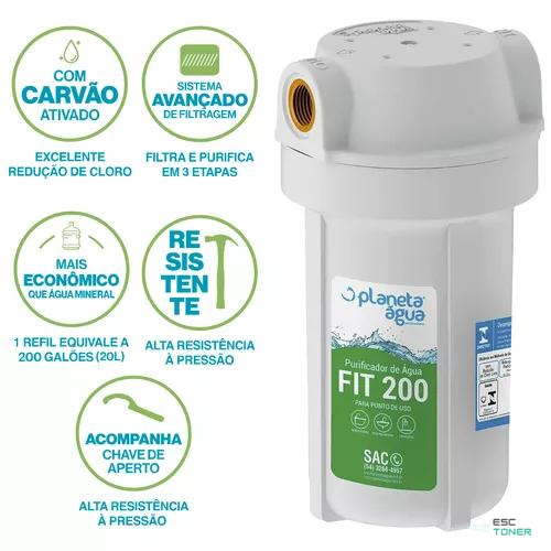Purificador Água Filtro Planeta Água Fit 200 Torneira Pia Bebedouro Carvão Ativado Pou Branco Saúde