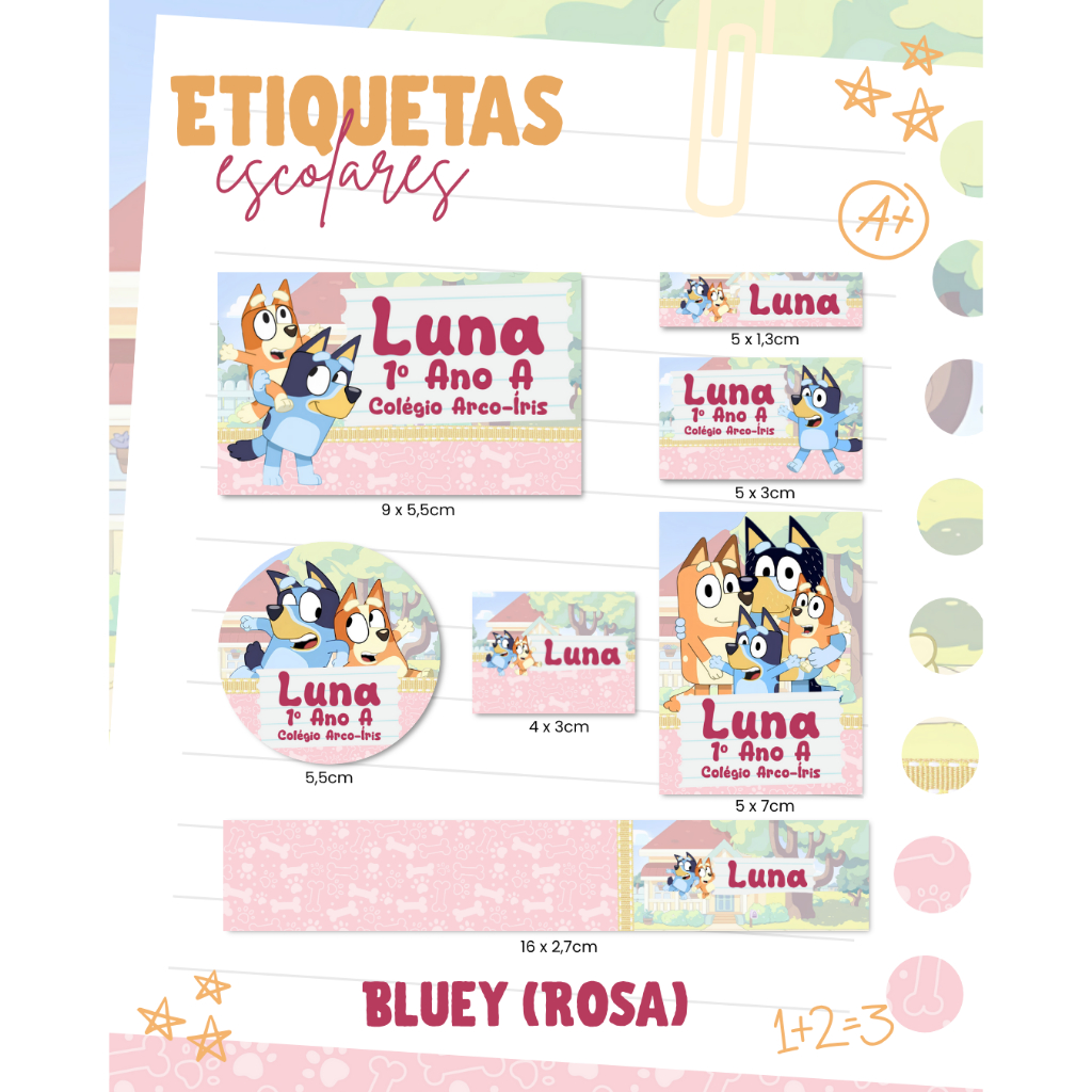 100 Etiquetas Escolares Bluey Adesivas - REALIZAMOS QUALQUER TEMA