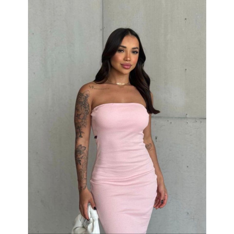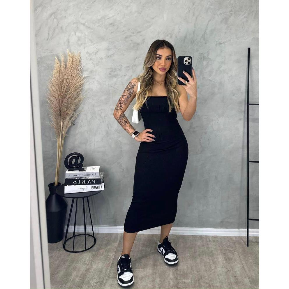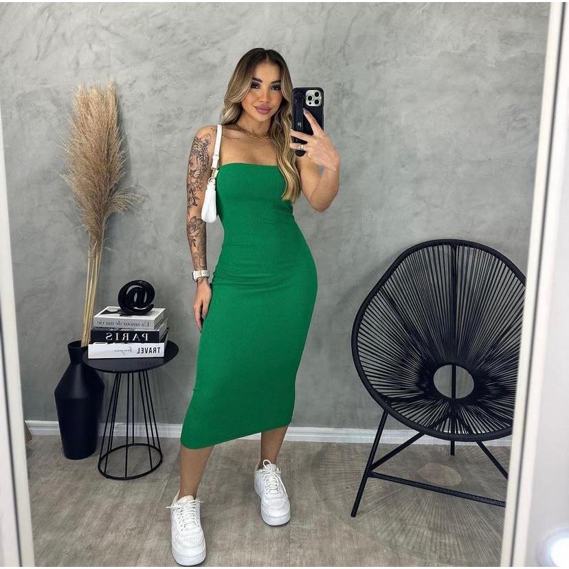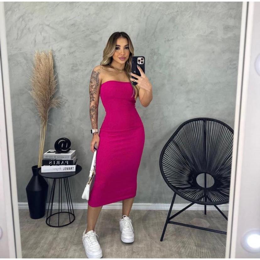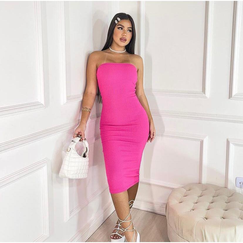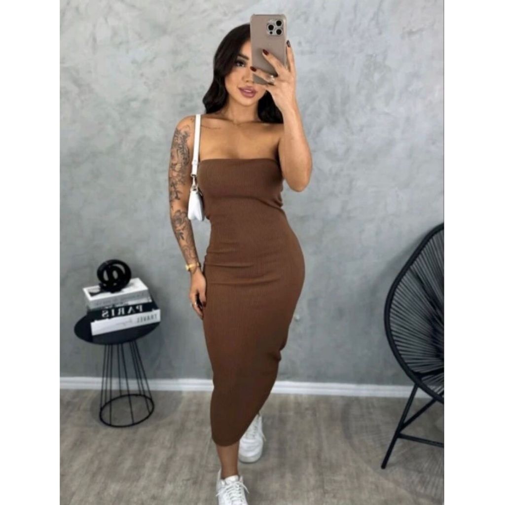 Vestido Feminino Midi Tomara que Caia Canelado Elegância E Conforto Em Um Único Vestido Tubinho