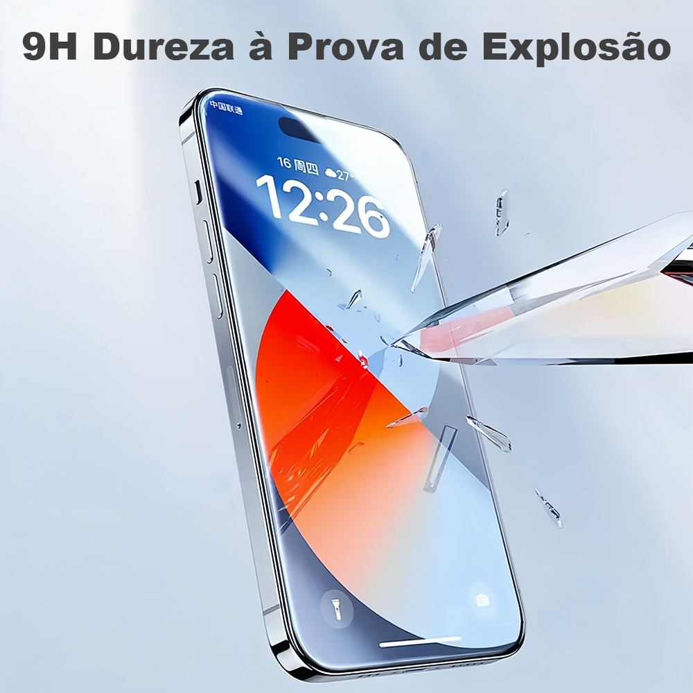 Kit 2 Pelicula de Vidro Temperado 9H Aplicação em 1 Toque Sem Poeira Protetor De Tela Para iPhone