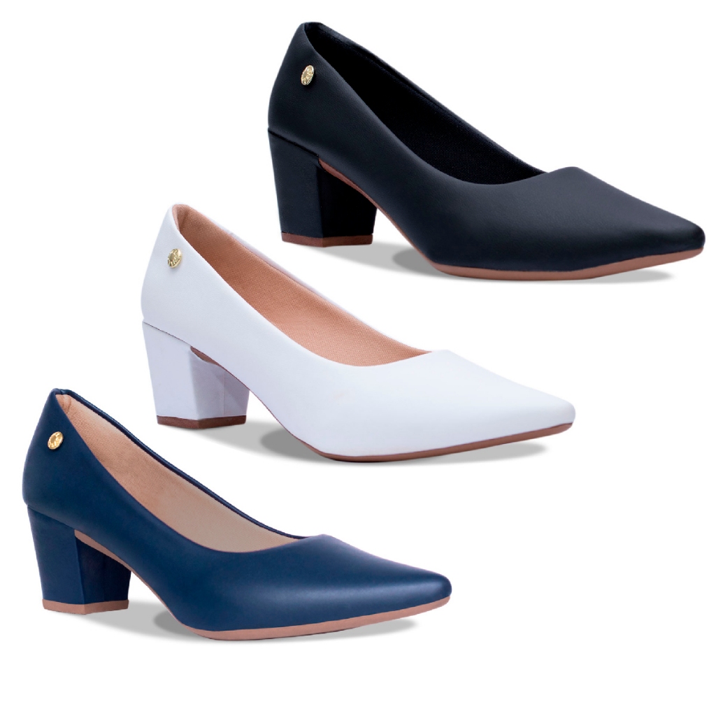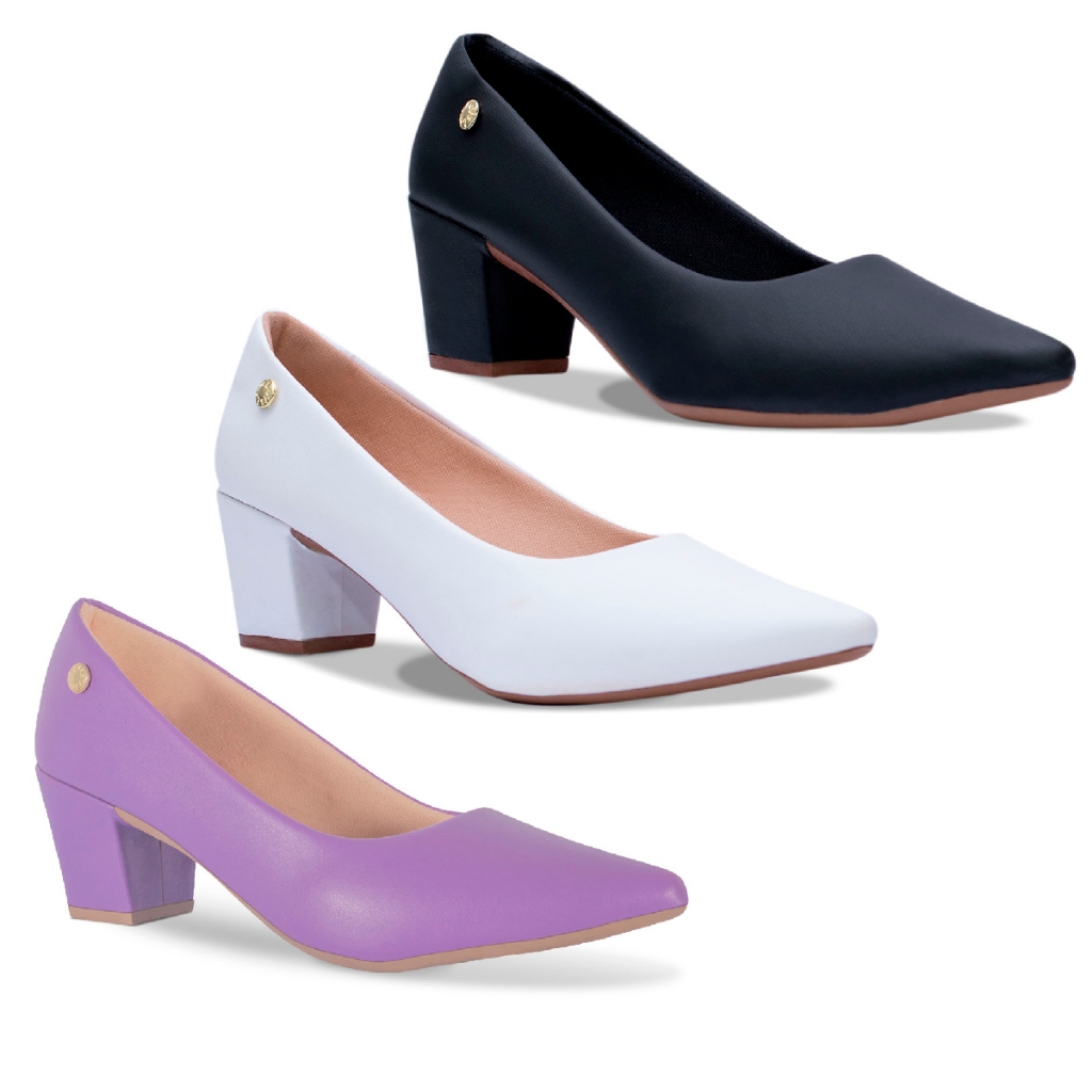 Kit 3 Sapato Scarpin Feminino Salto Baixo Bloco Bico Fino R2.11/R2.12