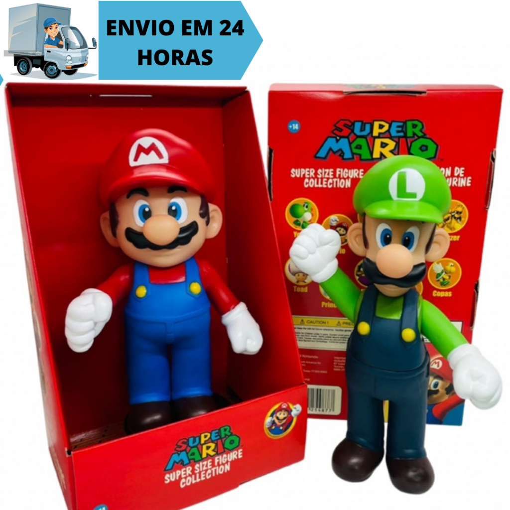 Combo Kit 2 Bonecos Mario e Luigi Vinil Collection Brinquedo Jogo 23cm Colecionável Brinquedo