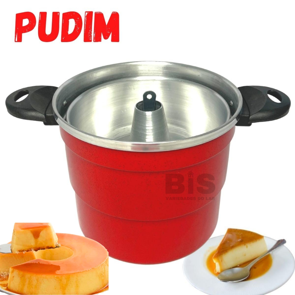 Panela 3em1 Banho Maria Cuscuzeira Vermelha Multiuso Faz Alimentos a Vapor Pudim e Cuscuz