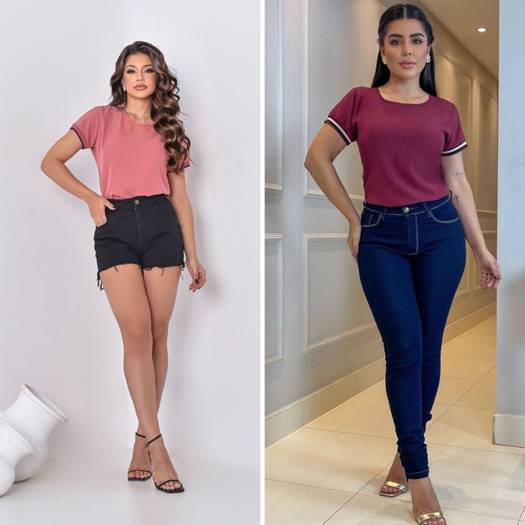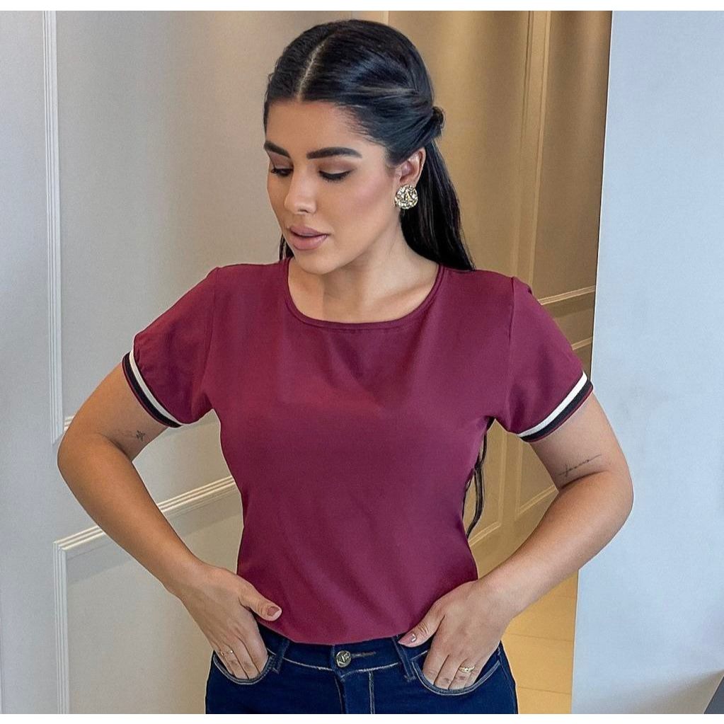 Blusinha Feminina Manga Curta Com Punho no Sedinha