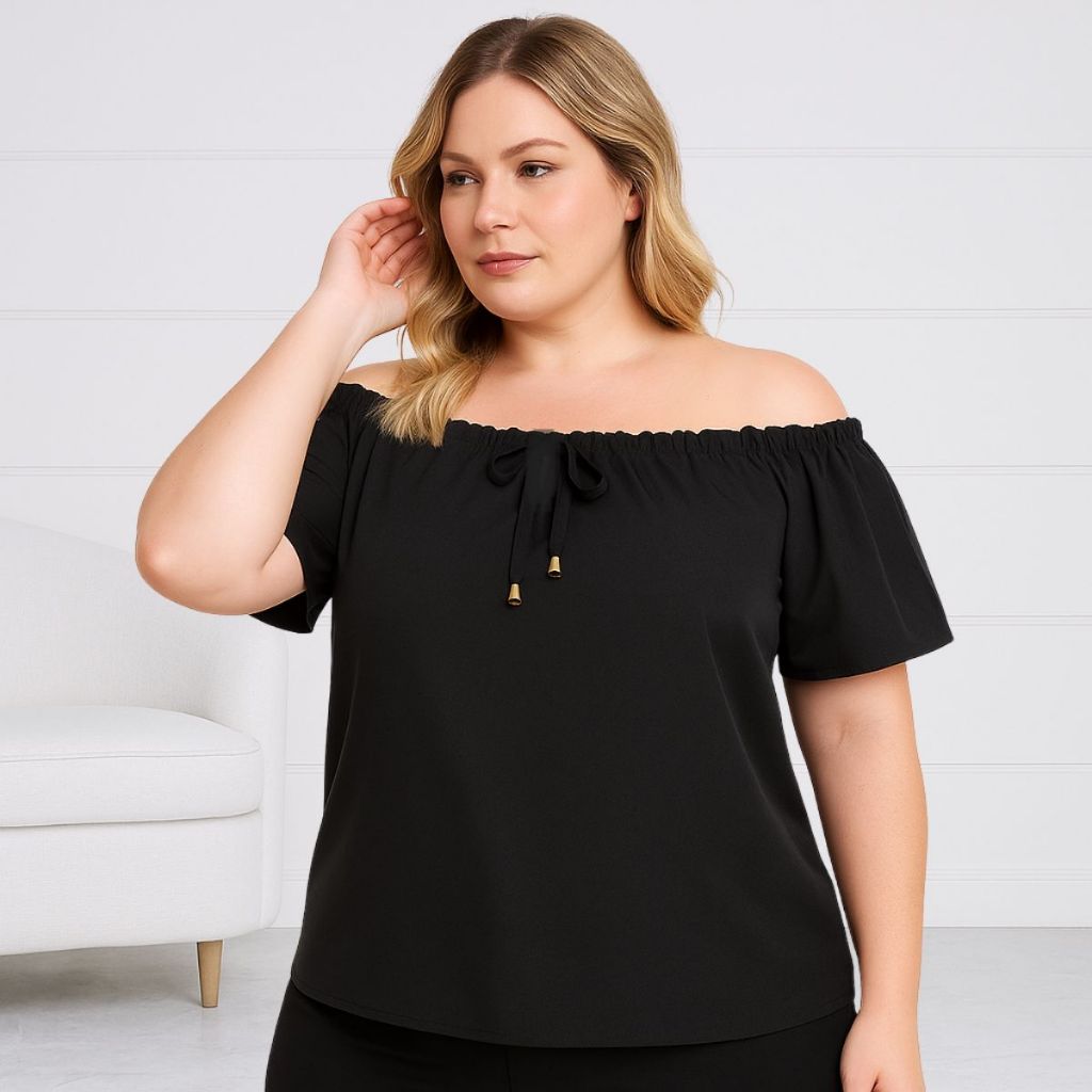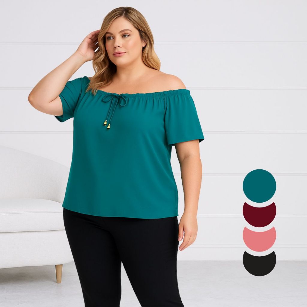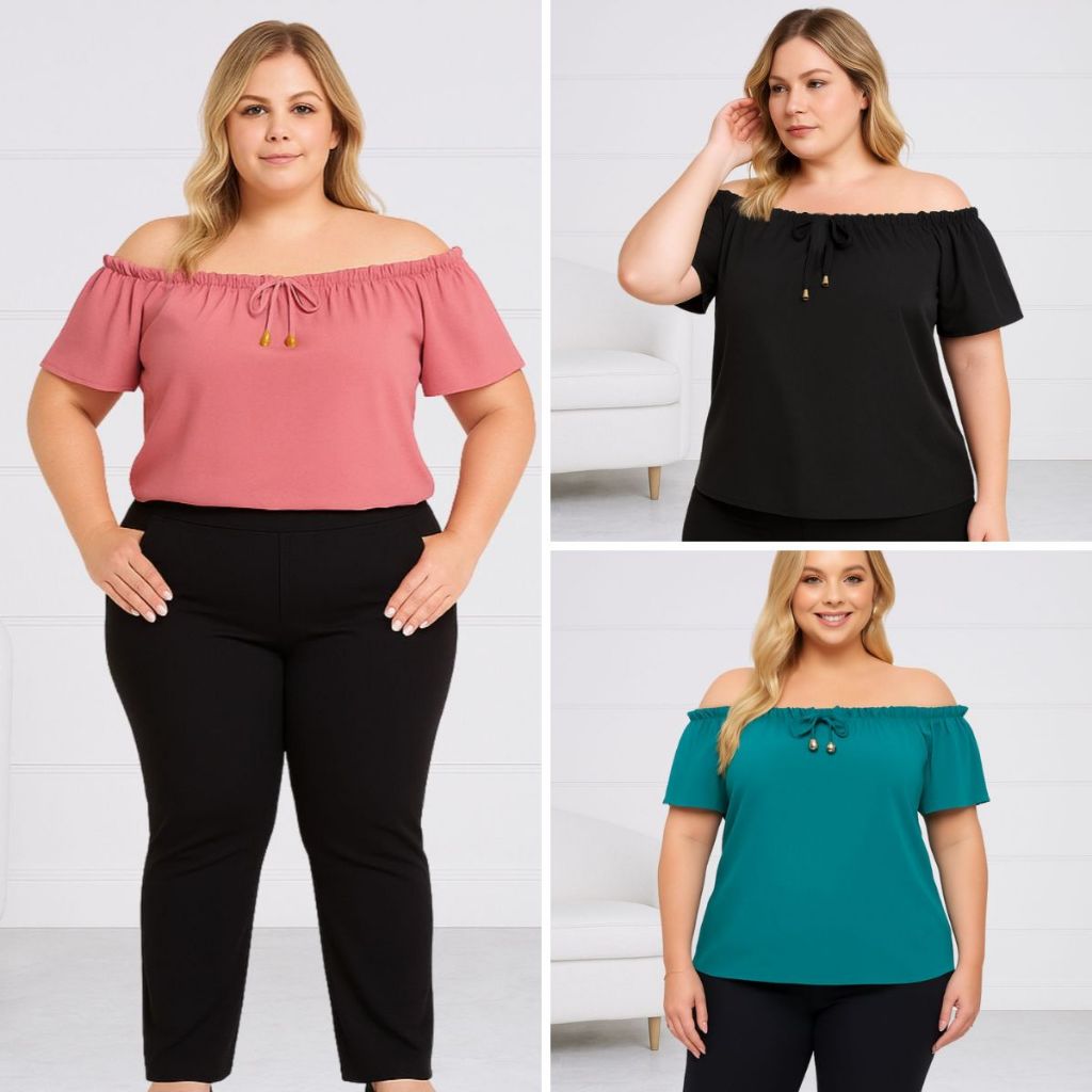 Blusa Feminina Plus Size Ciganinha Manga Curta Soltinha No Crepinho