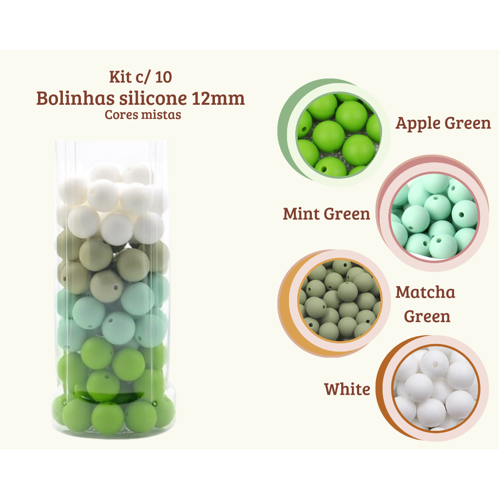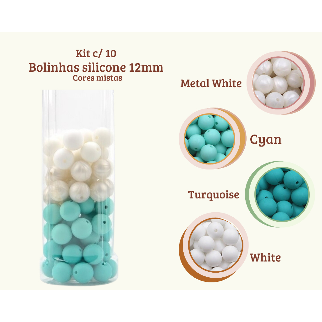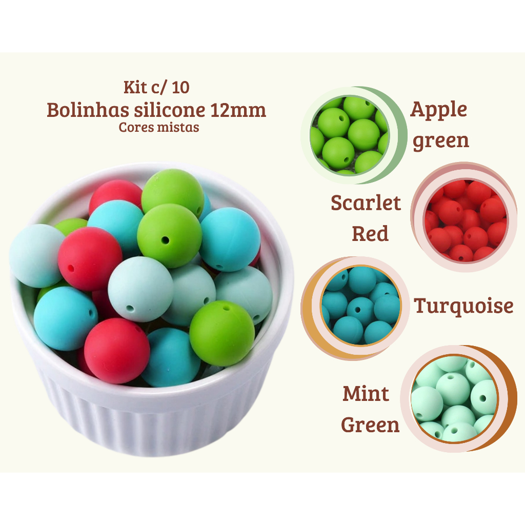 Kit com 10 bolinhas de silicone de 12mm livre de bpa para artesanato - Cores mistas