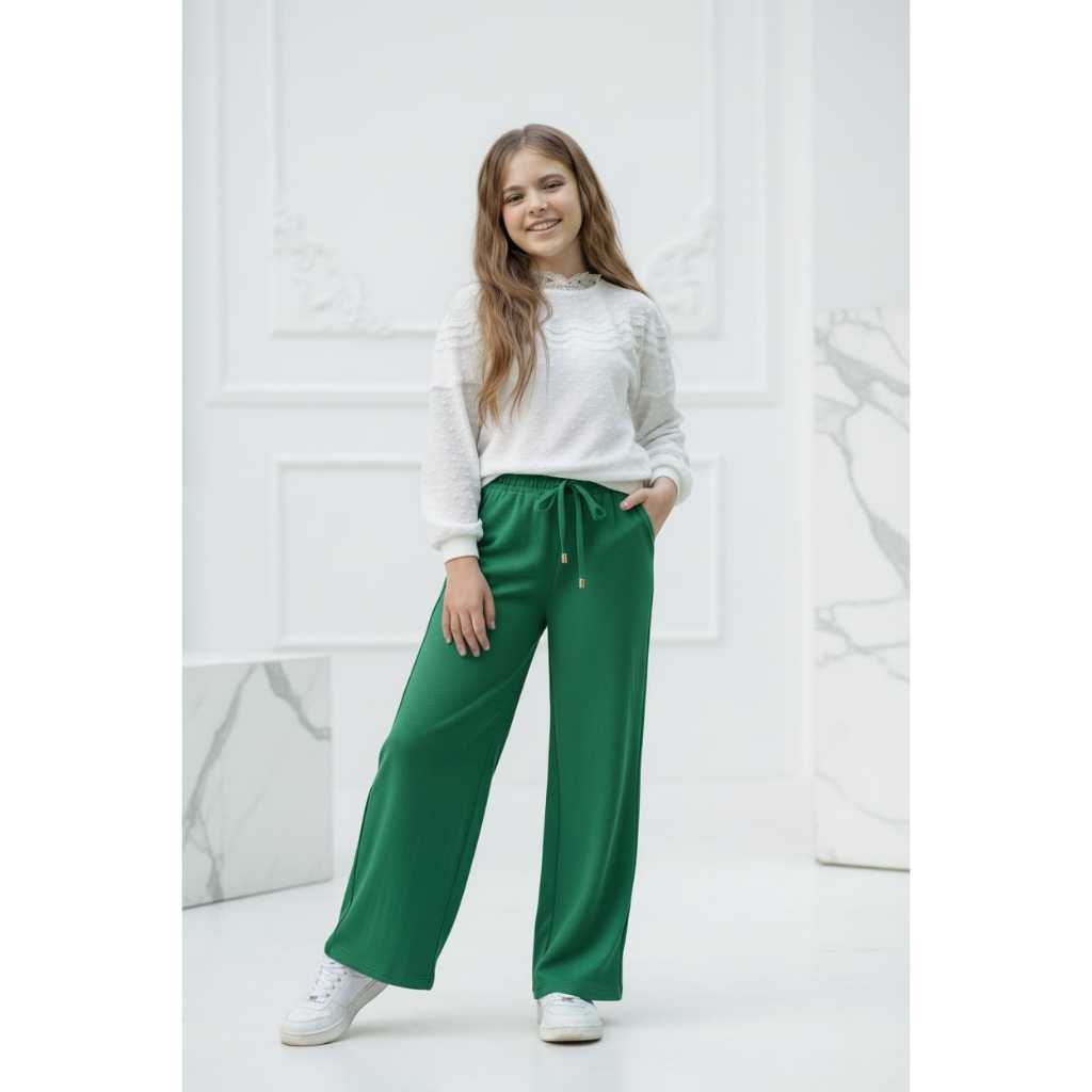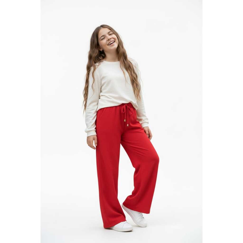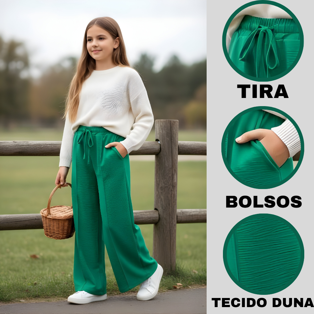 Calça Infantil Feminina Pantalona Soltinha Roupa Menina Princesa com Bolsos e Elástico na Cintura