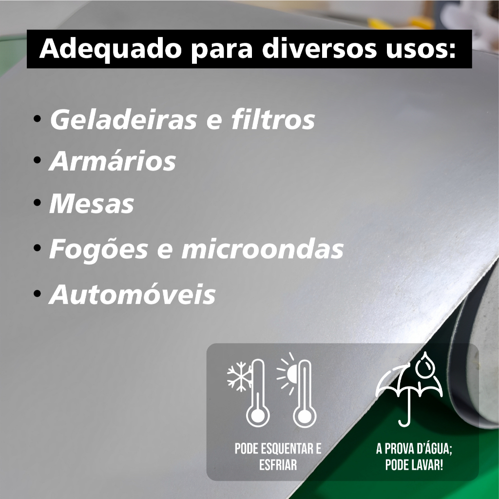 Adesivo Vinil Película de Prata tipo Inox 10m x 30cm e 50cm Envelopamento de Geladeiras e Fogões
