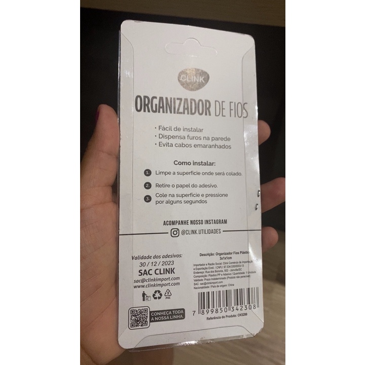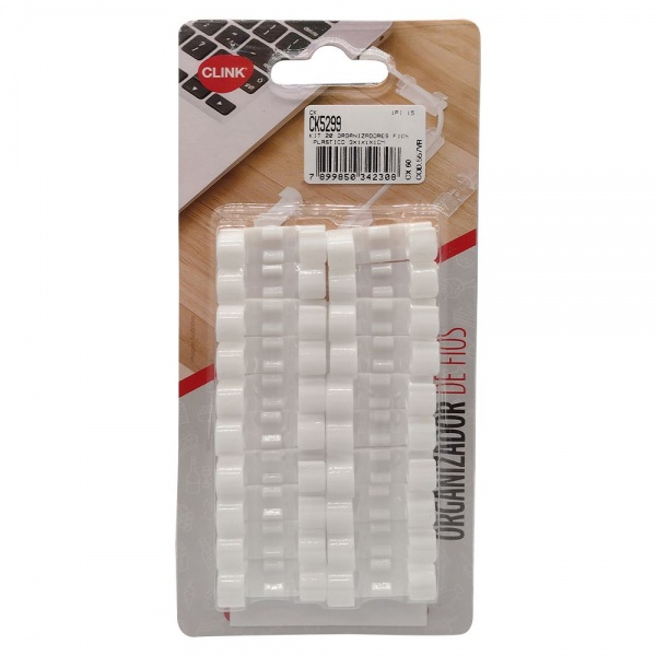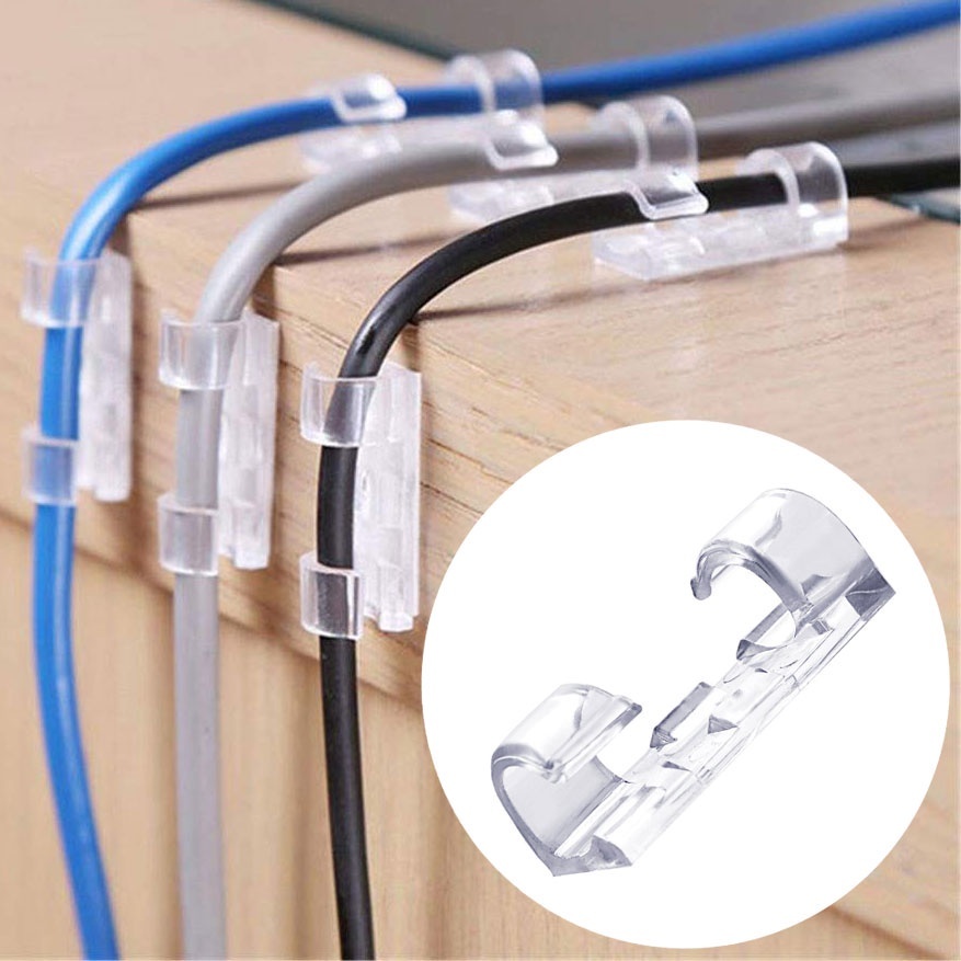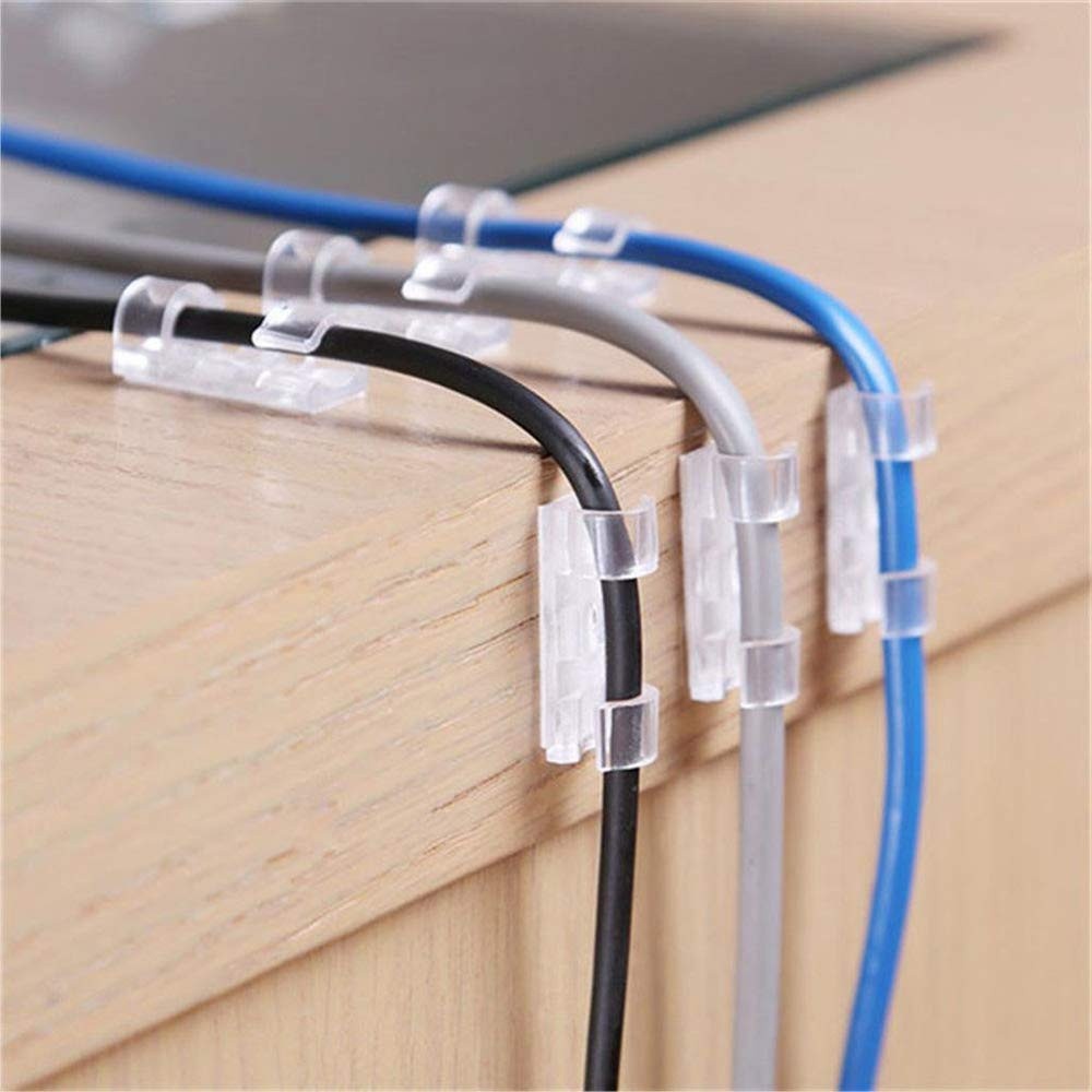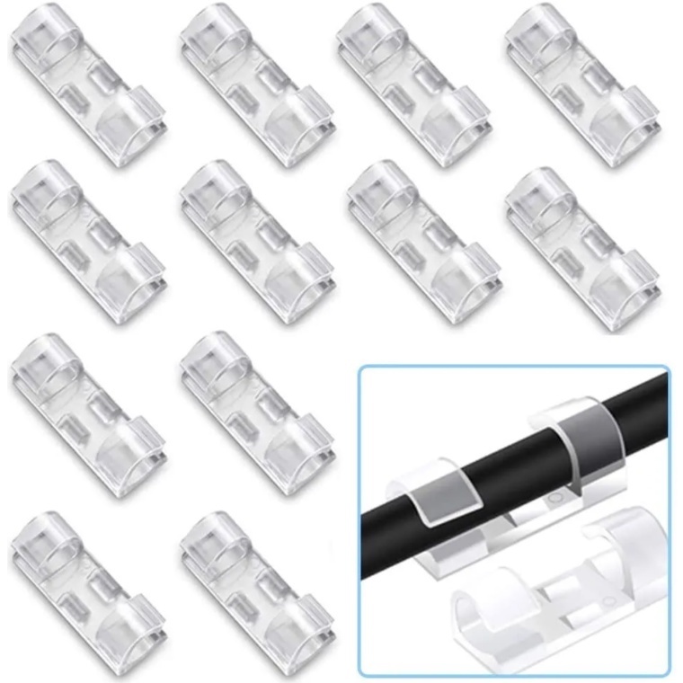 Kit 20 Prendedor Organizador De Fios e Cabos Para Organização Fixa Acompanha Fita Dupla Face Clips Passa Fio Plástico