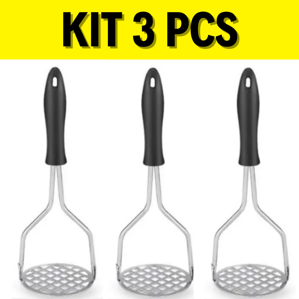 Amassador Espremedor de Batatas Aço Inox Manual Cabo De Plástico Purê Legumes Feijão Amassar