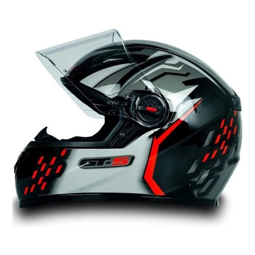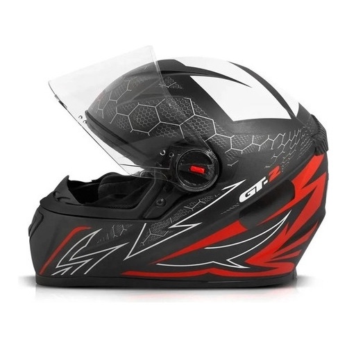 Capacete Gt 2 Vermelho Fosco Viseira Cristal Com Narigueira