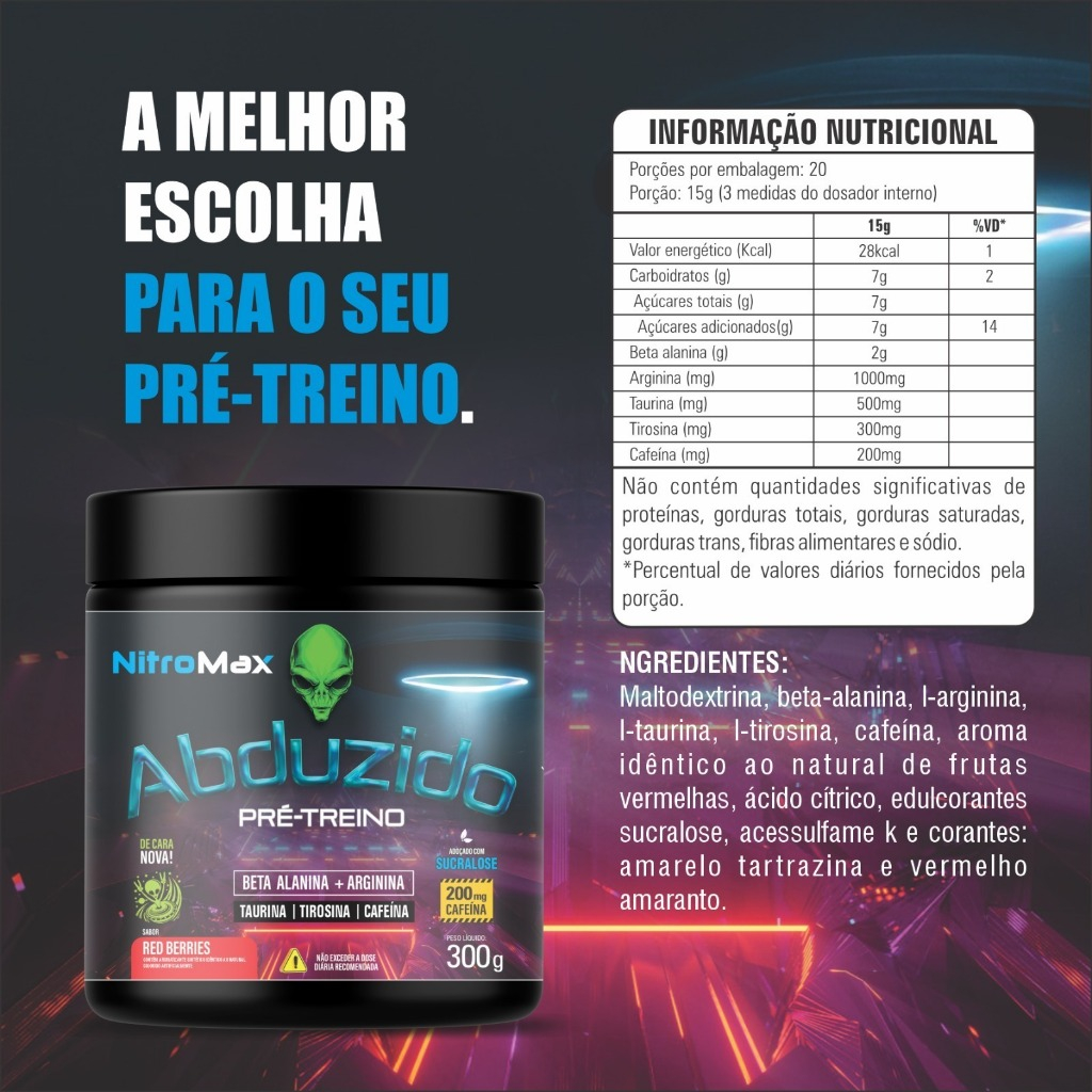 Abduzido Pré Treino - 300g - Nova Fórmula com 2g Beta Alanina / 2g Arginina - Nitromax