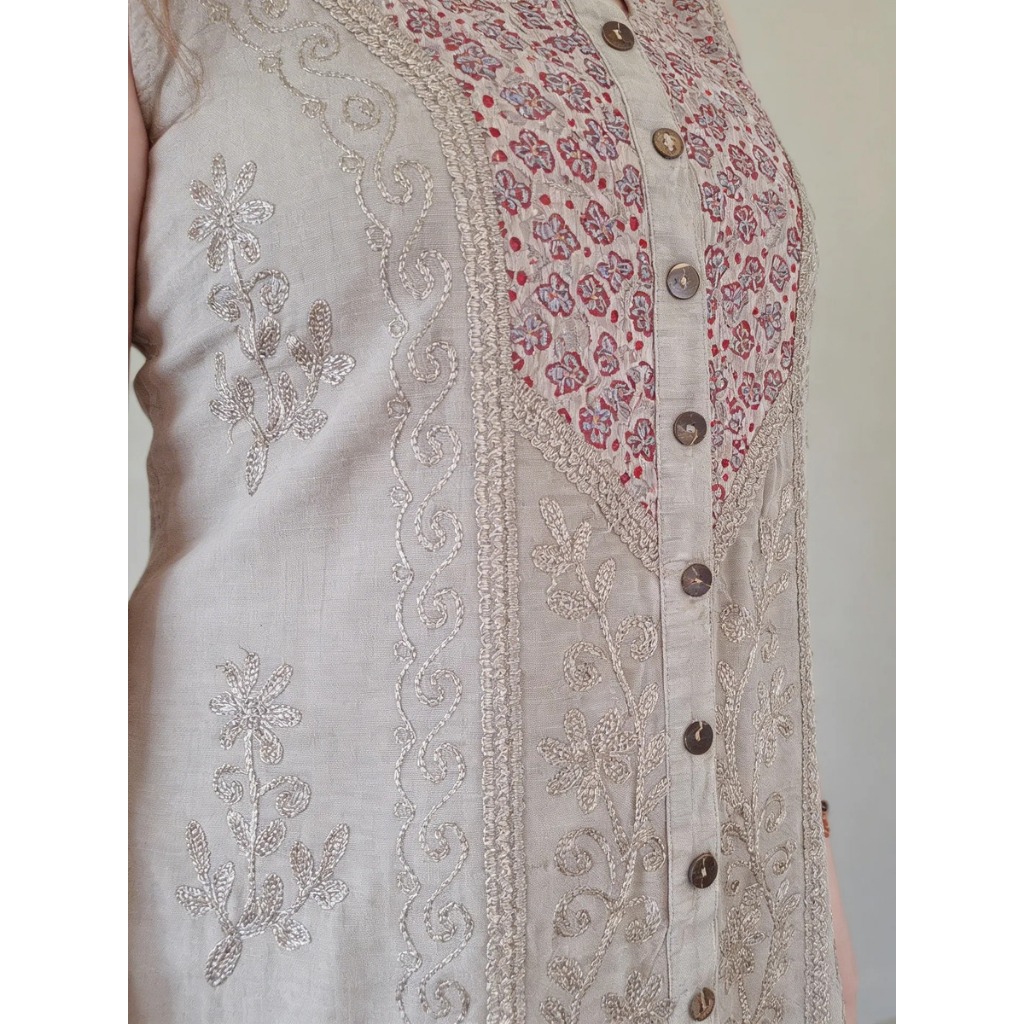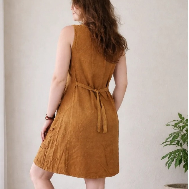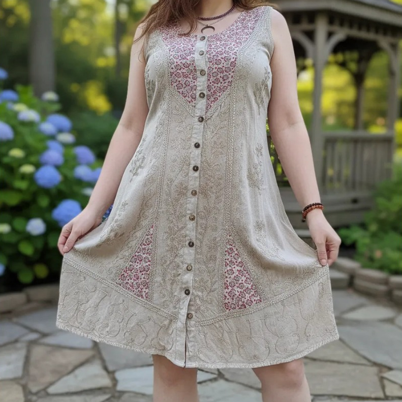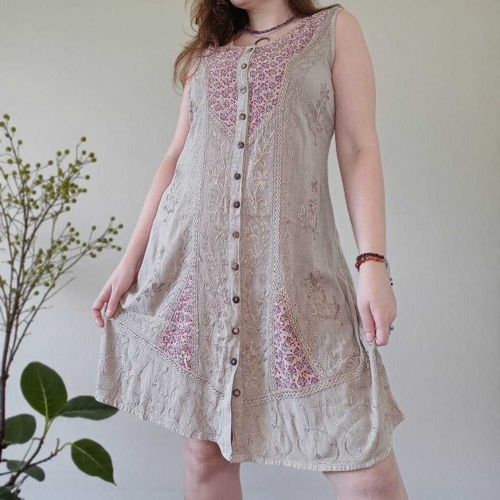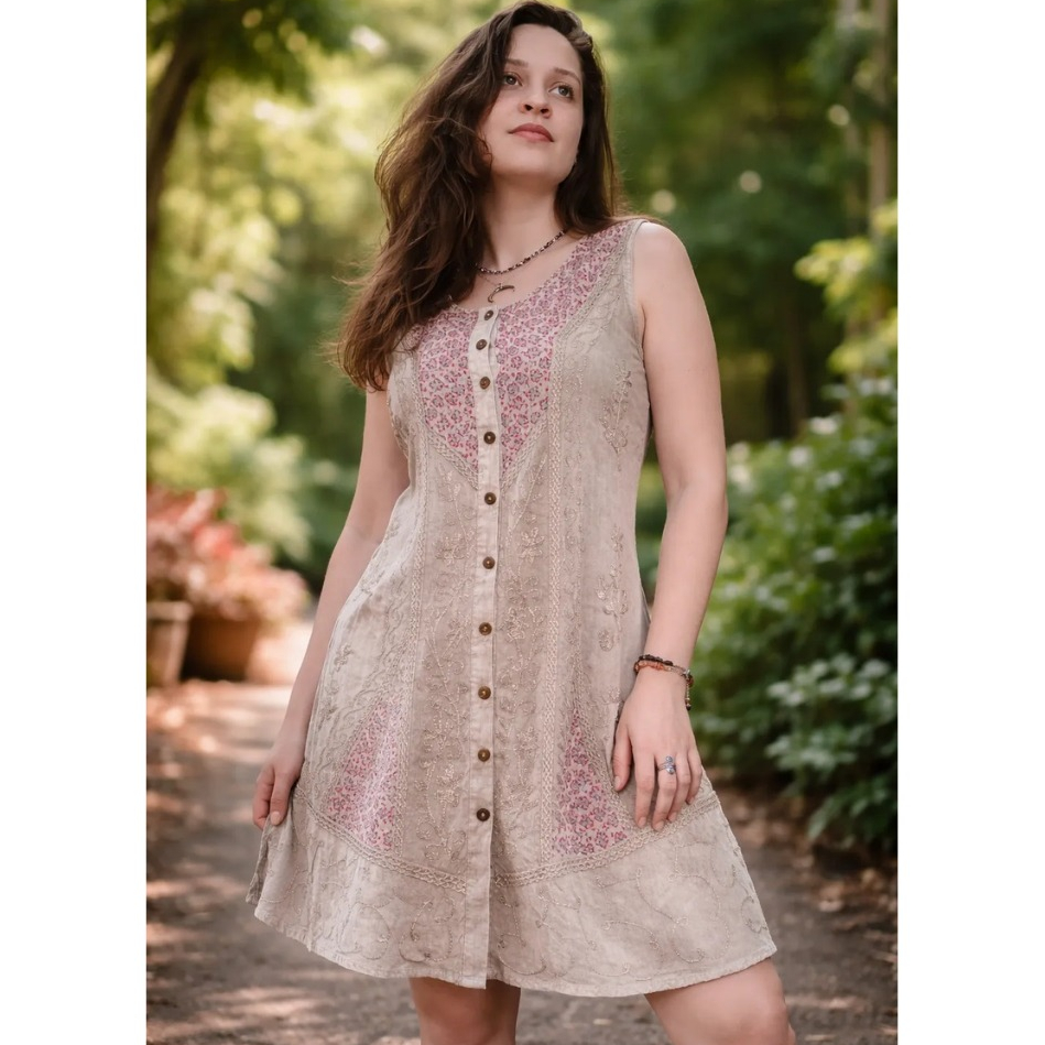Vestido Indiano Regata Com Botões Bordado Estonado Hippie Boho Curto