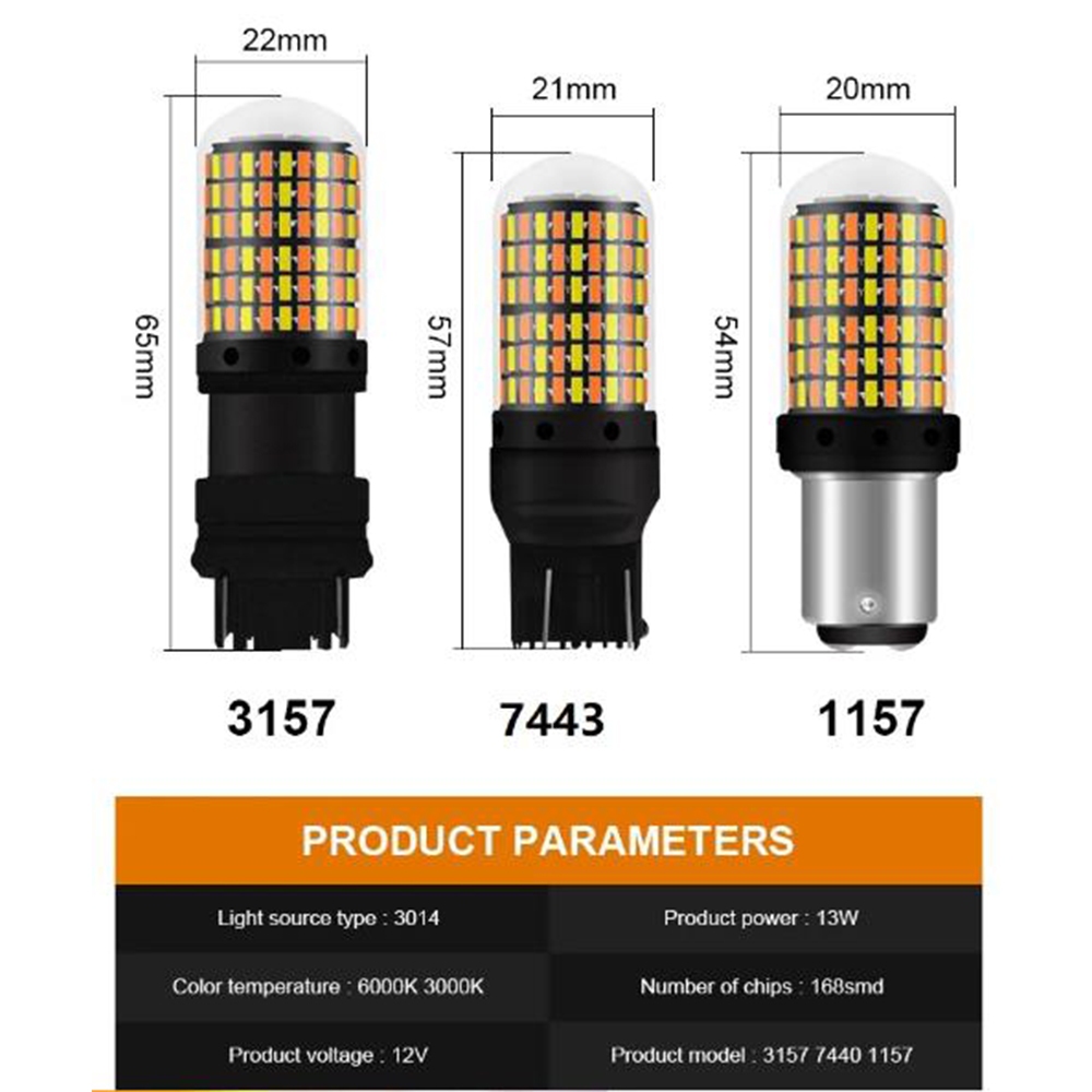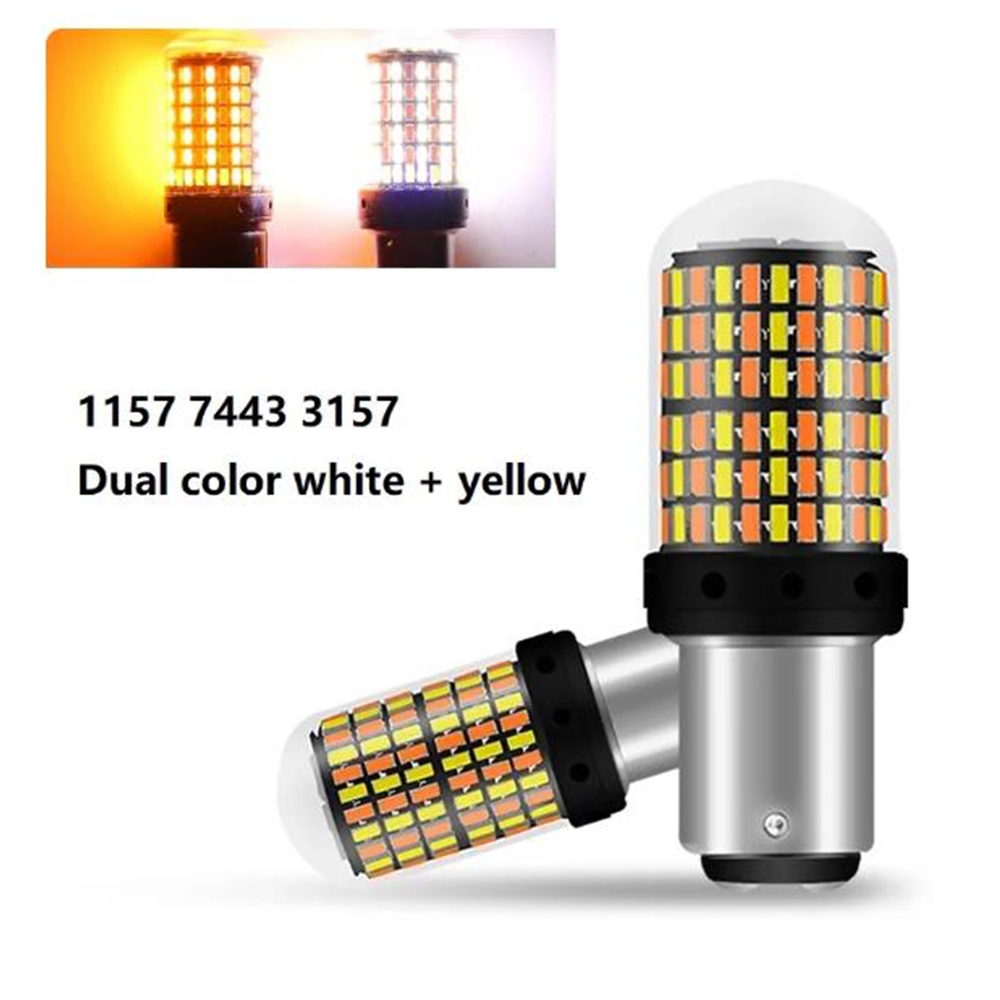 Lâmpada T20 Led Dupla Cor T20 7443 W21/5W 1157 BAY15D P21 T25 3157 P27/7W Carro DRL Interruptor De Sinalização De Giro Automático