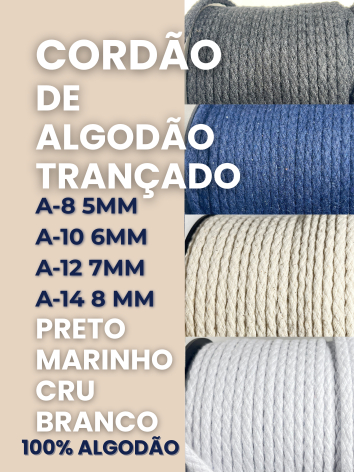 Cordão de Algodão para Moletom Capuz Shorts e Bermudas – Cordão Roliço para Roupa - Várias Espessuras