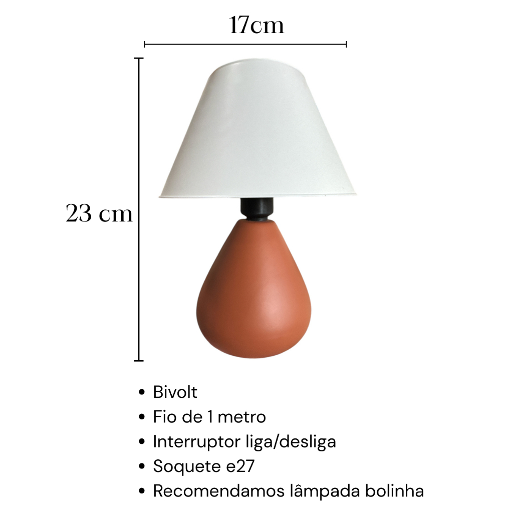 Abajur Cerâmica Porcelana Bivolt com Cúpula Ideal para Quarto Sala Escritório