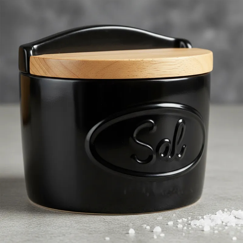 Saleiro De Porcelana Com Tampa De Madeira Elemento Essencial