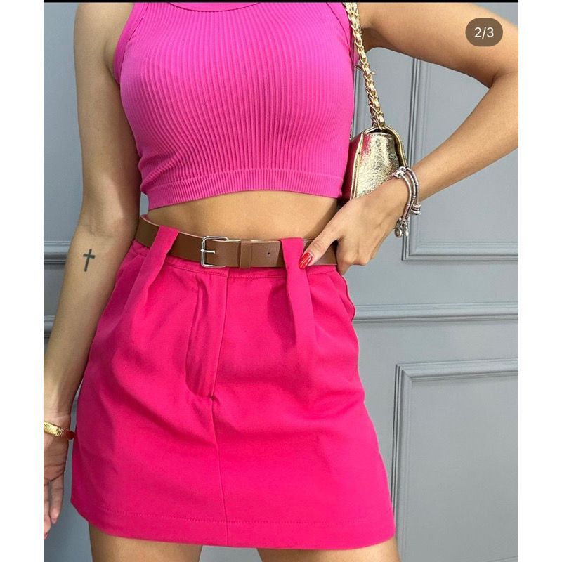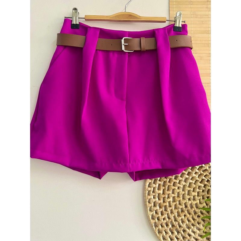 Short Saia Alfaiataria Com Cinto e Bolsos PROMOÇÃO