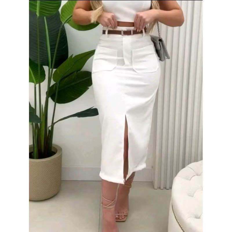 SAIA MÍDI ALFAIATARIA COM CINTO E BOLSOS PROMOÇÃO