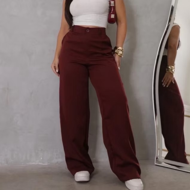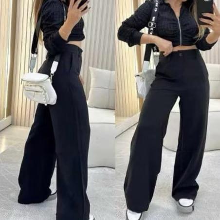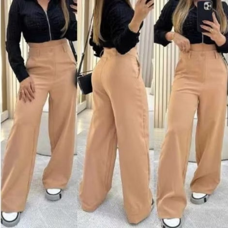 Calça Pantalona Alfaiataria Premium Com Bolso e Botão Promoção