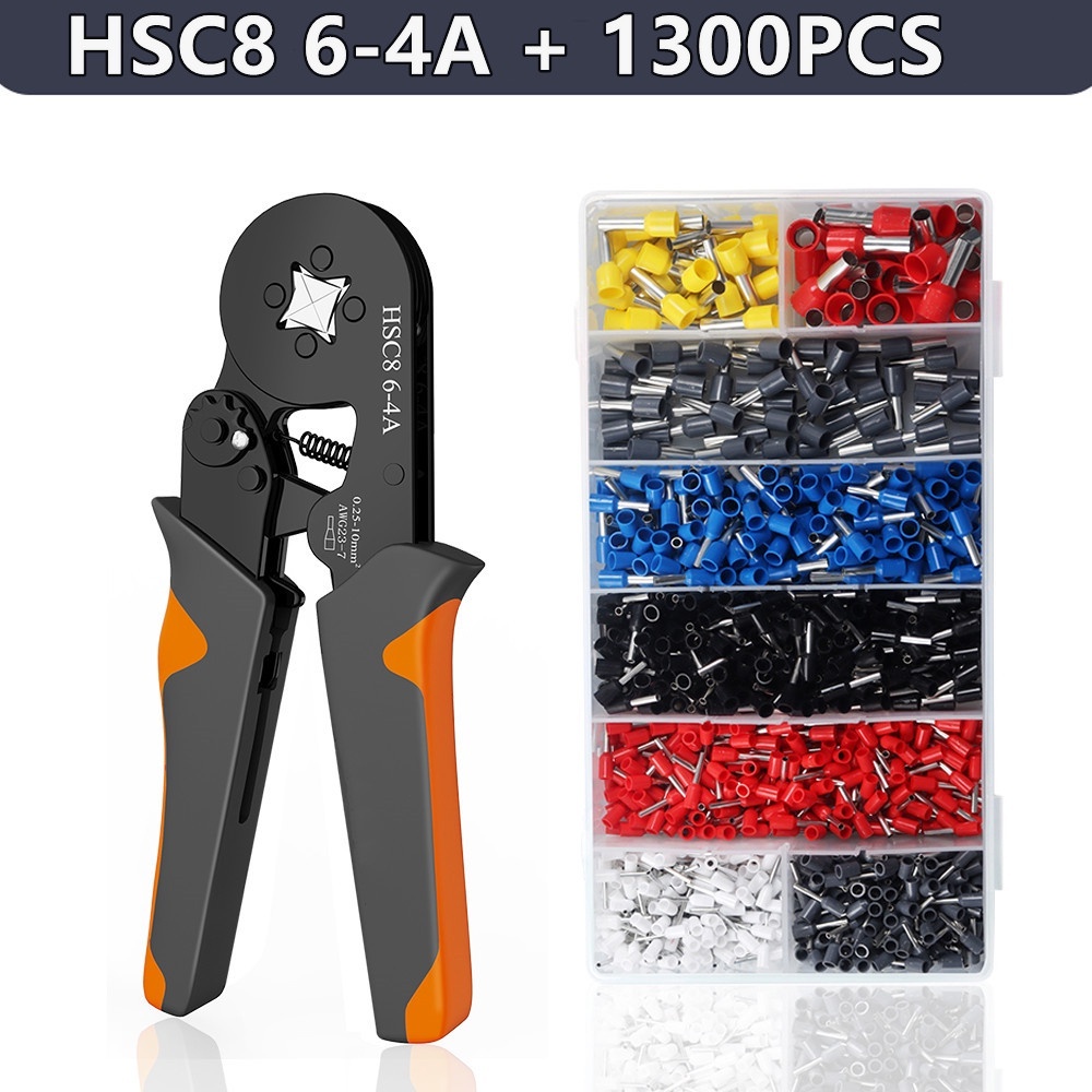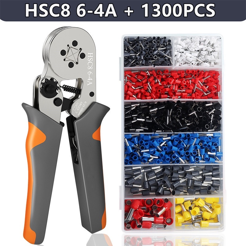 Alicate Crimpar Prensa +Box Com 1300Terminal Ilhos Tubolar 0,25 Até 10mm HSC8 6-4A