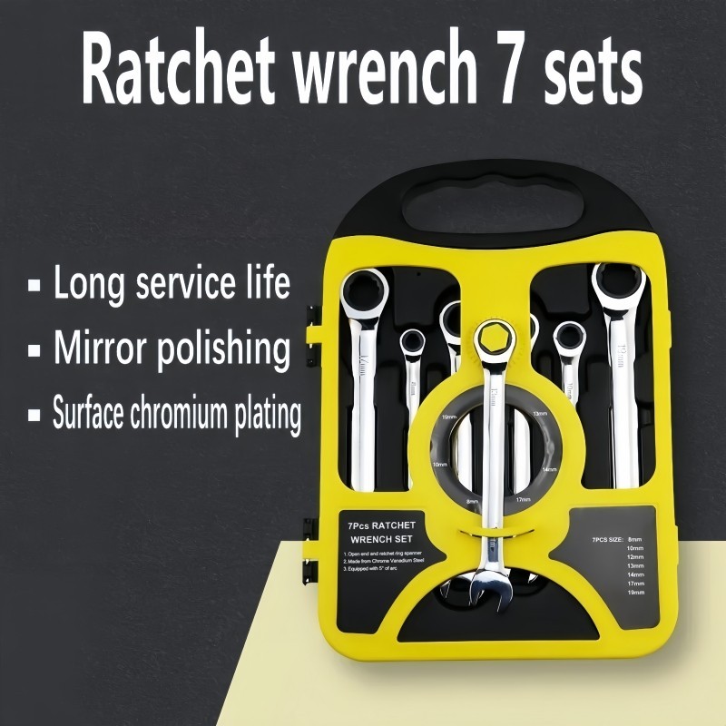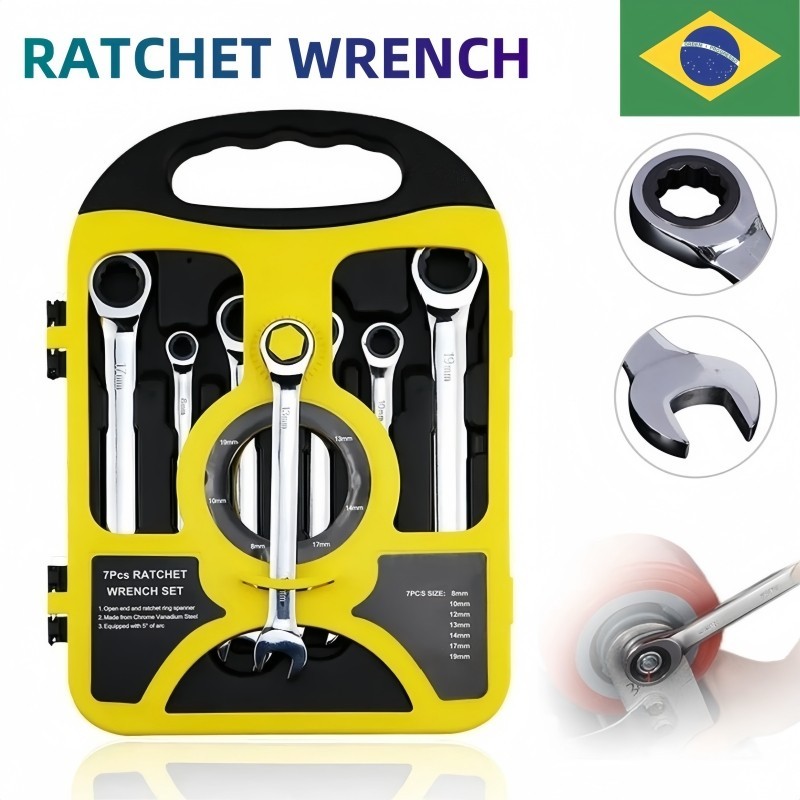 Kit 7 Peças Chave Ferramenta Combinada Catraca Boca Profissional
