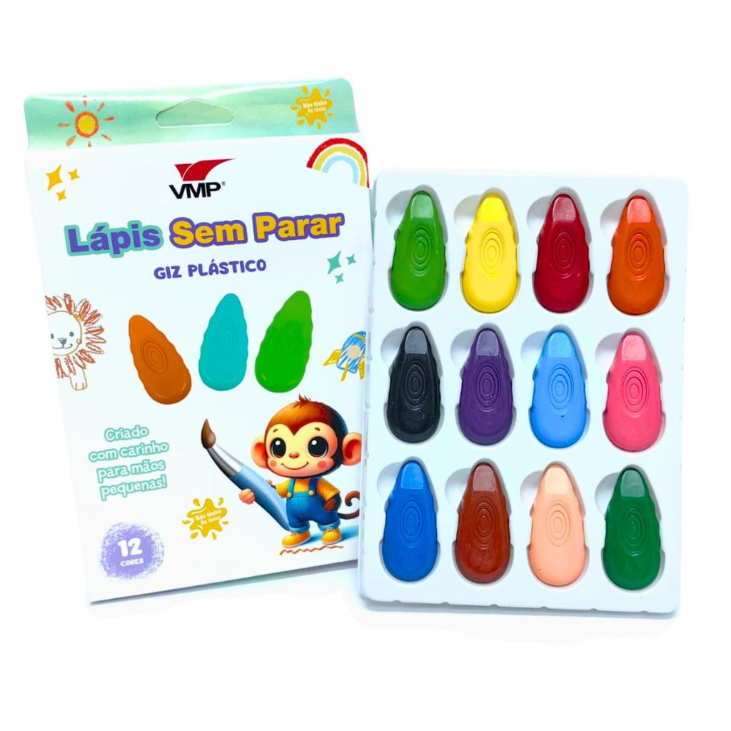Giz Plástico Lápis de Cor Giz Escolar 12 Cores Colorir Giz de Cera Material Escolar