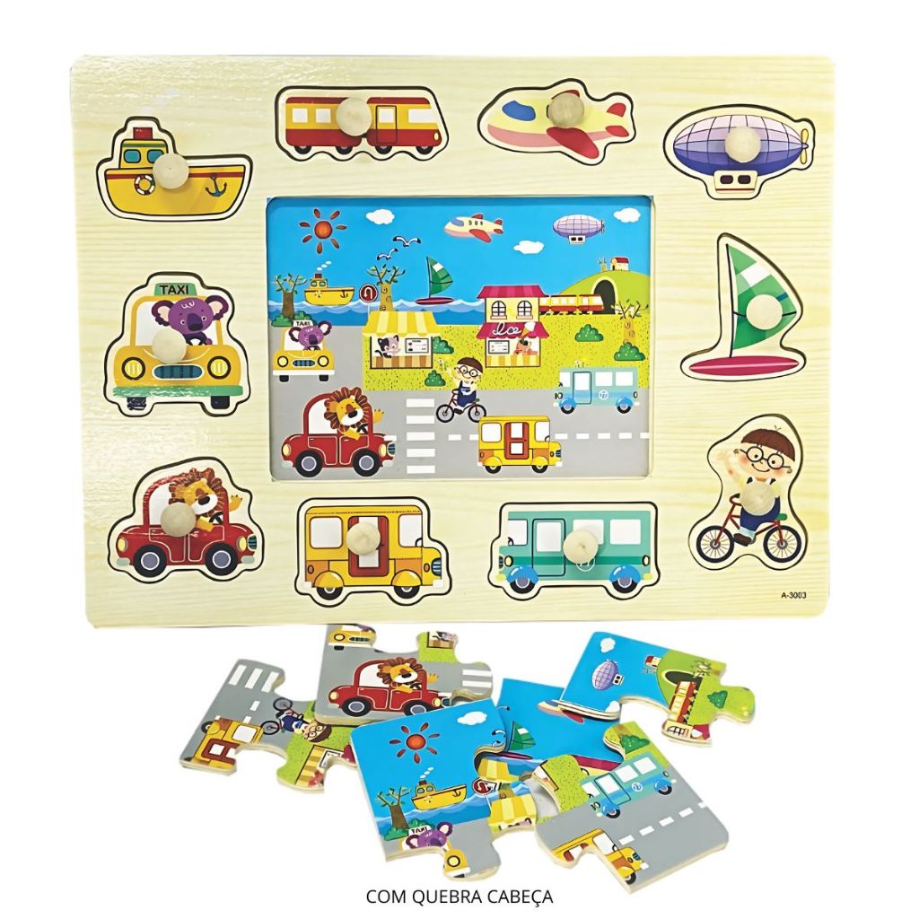 Brinquedo Encaixe Frutas Transporte Animais Madeira Quebra Cabeça Educativo Pedagógico Com Pinos MDF