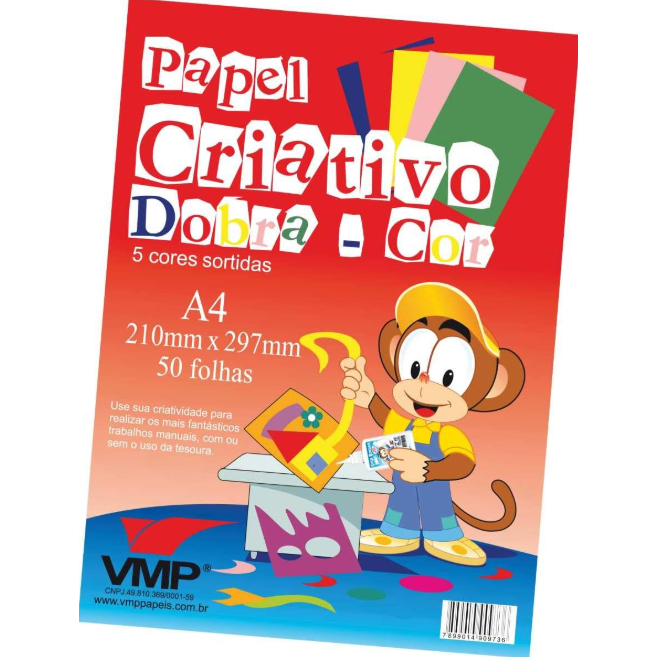 Papel Criativo Dobra-Cor A4 50 Folhas Colorido Volta as Aulas