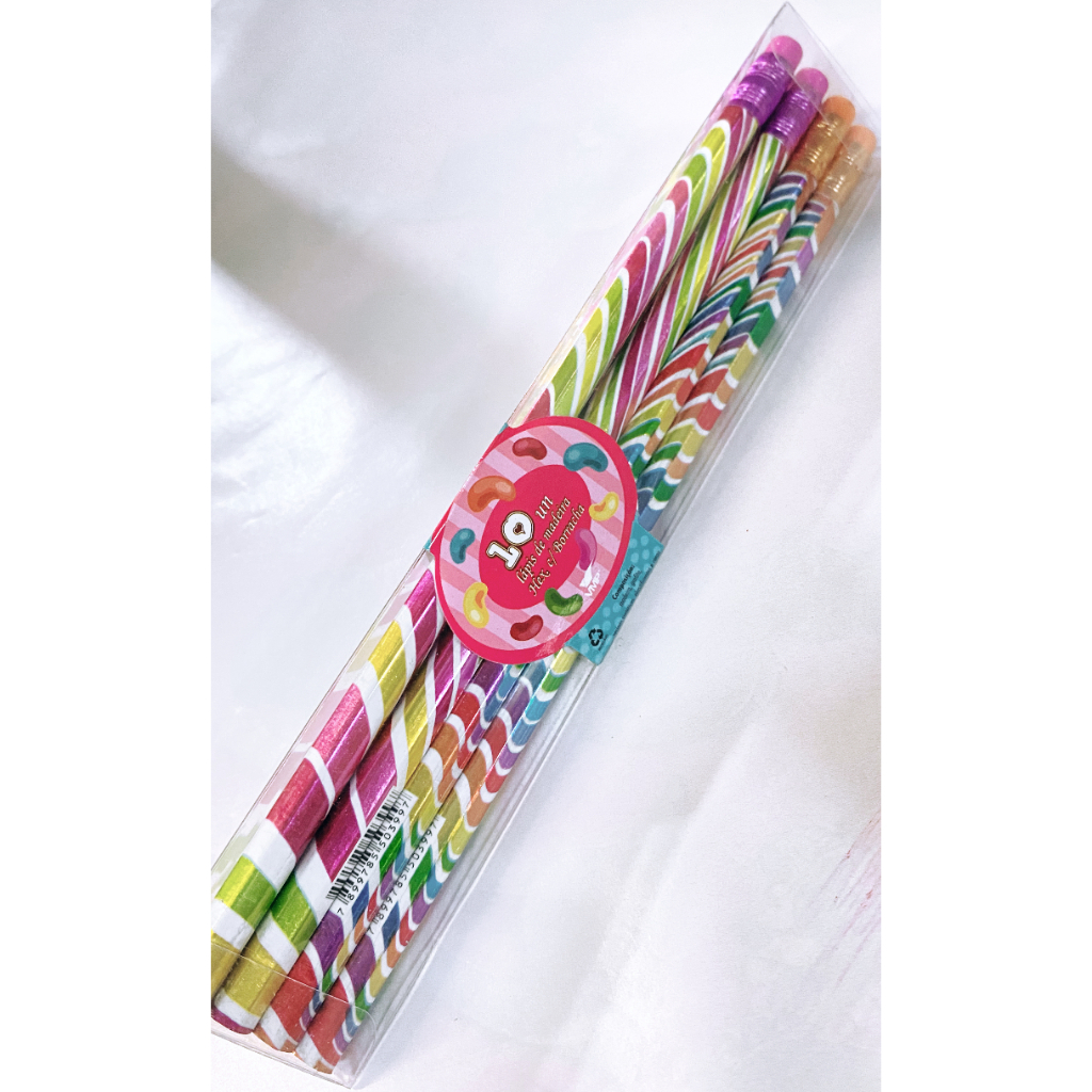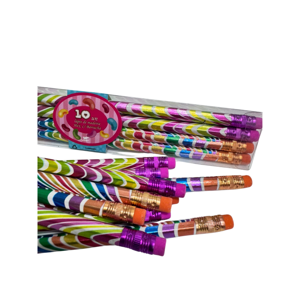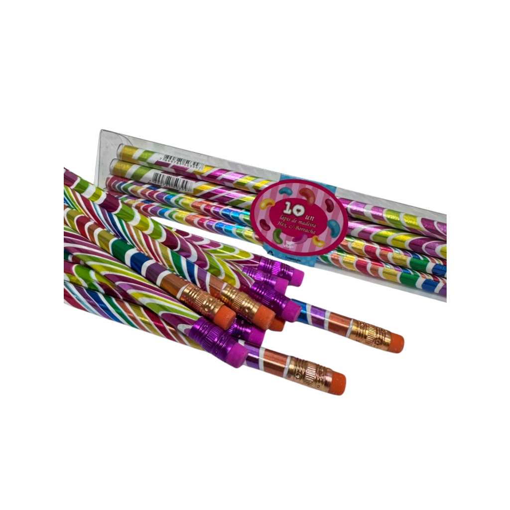 Lápis Grafite Preto Madeira Com Borracha Kit Com 10 Lolipop Escolar Escritório Colorido