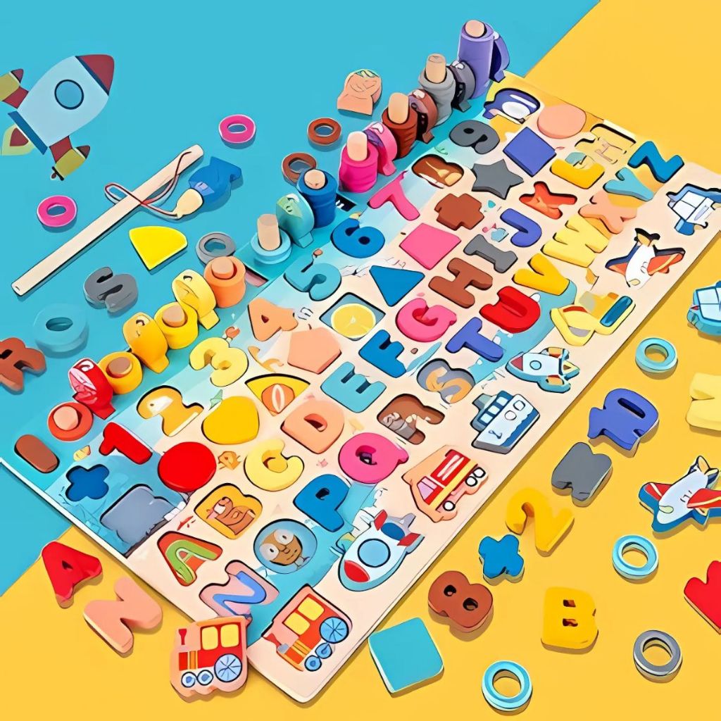 Brinquedo Educativo Tabuleiro Montessori Infantil Madeira MDF Pedagógico Educativo Letras e Numeros