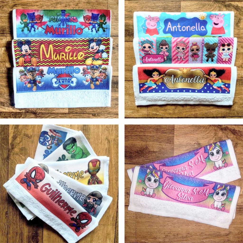 Kit 10 Toalha Toalhinha De Mão Rosto Personalizada Todos Temas Lavabo Infantil Escola Adulto Empresa