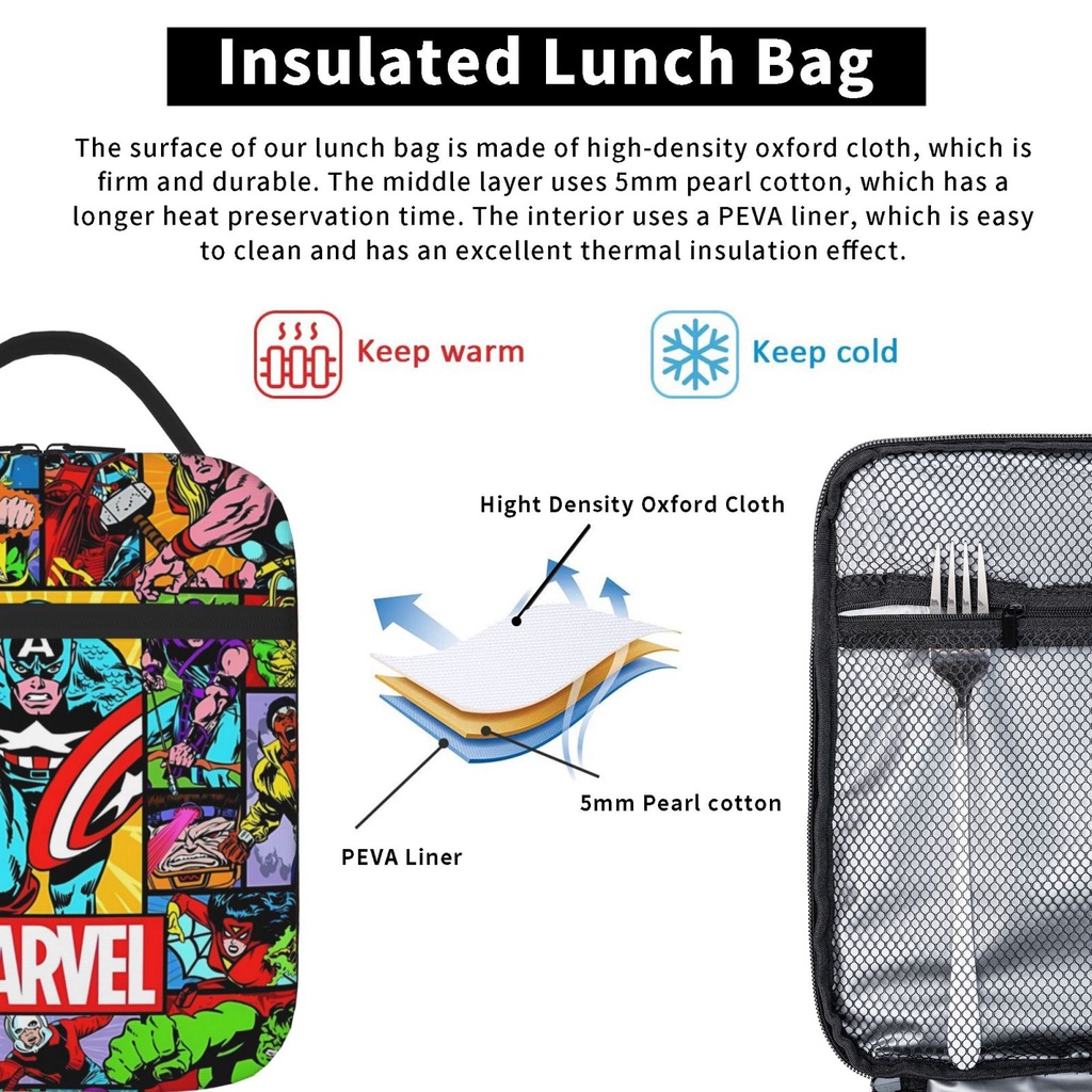 Lancheira Isolada Marvel Saco De Almoço Portátil Estudantil Feminino De Trabalho Homem Para Piquenique
