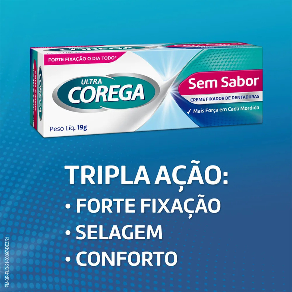 Fixador De Dentadura Corega Ultra Creme Sem Sabor 19g