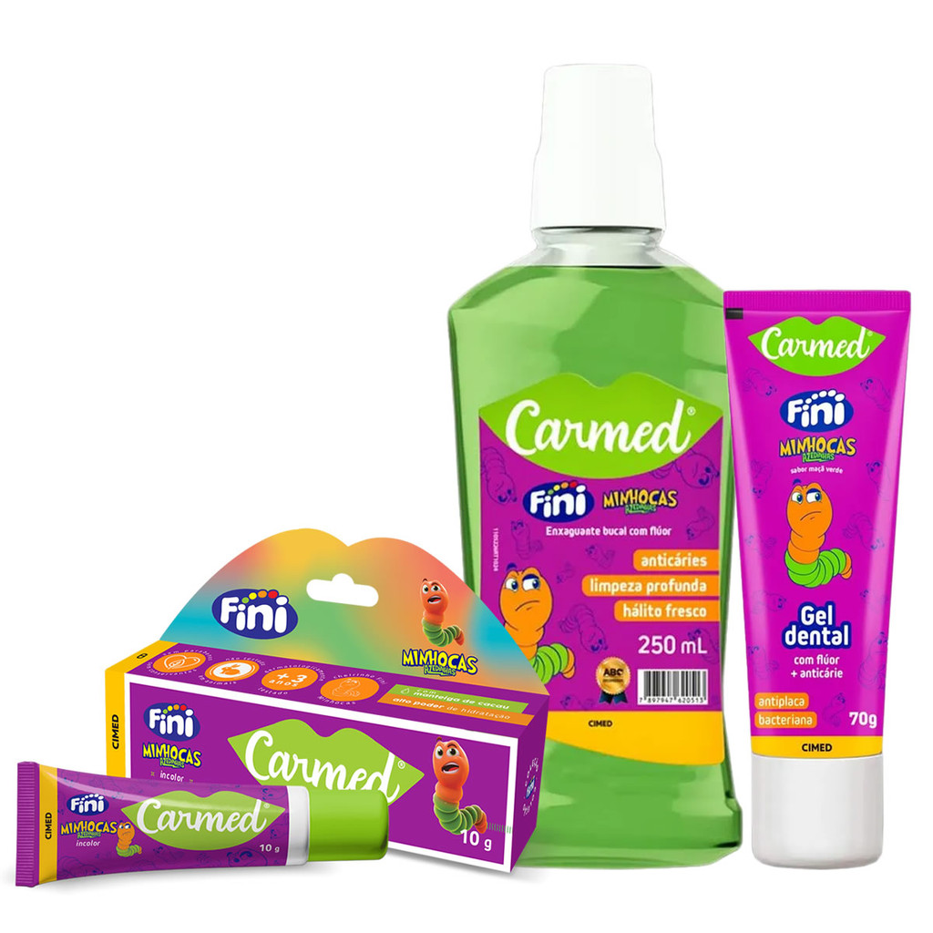 Kit Carmed Fini Minhocas Hidratante, Enxaguante e Gel Dental