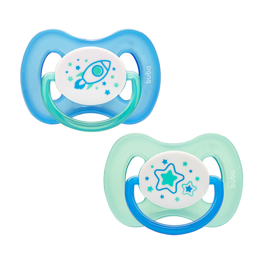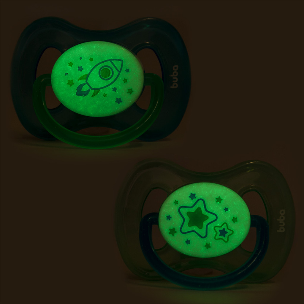 Kit 2 Chupeta Comfort Buba Tamanho 2 Noturna Foguete