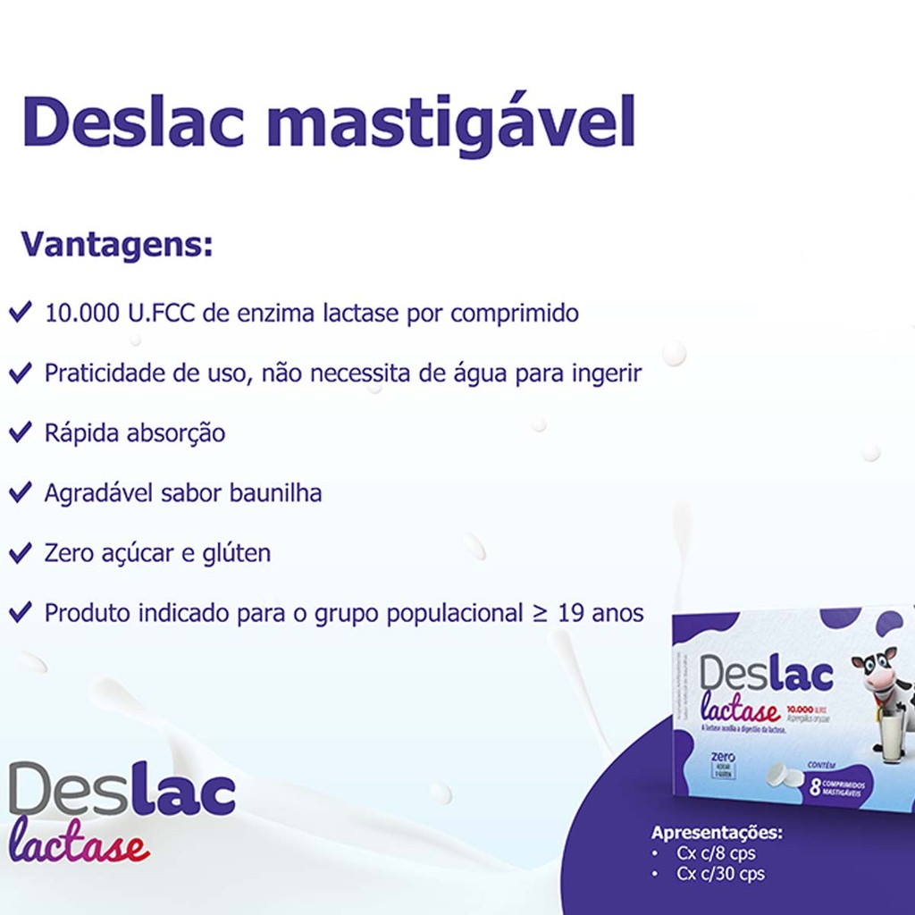 Kit 3 und Deslac Lactase 10.000 FCC Mastigavel 8 cpr