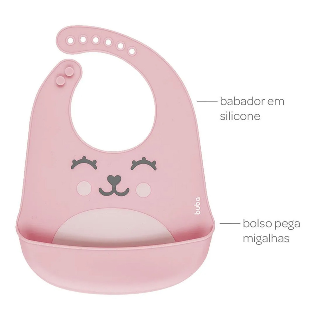 Babador Silicone Buba Impermeável Pega Migalhas Gumy Rosa