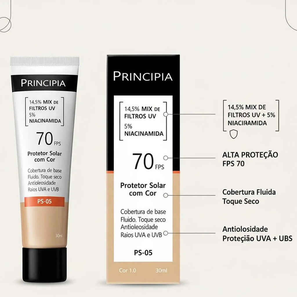 Protetor Solar Principia Niacinamida FPS70 Cor 1.0 PS-05 30ml