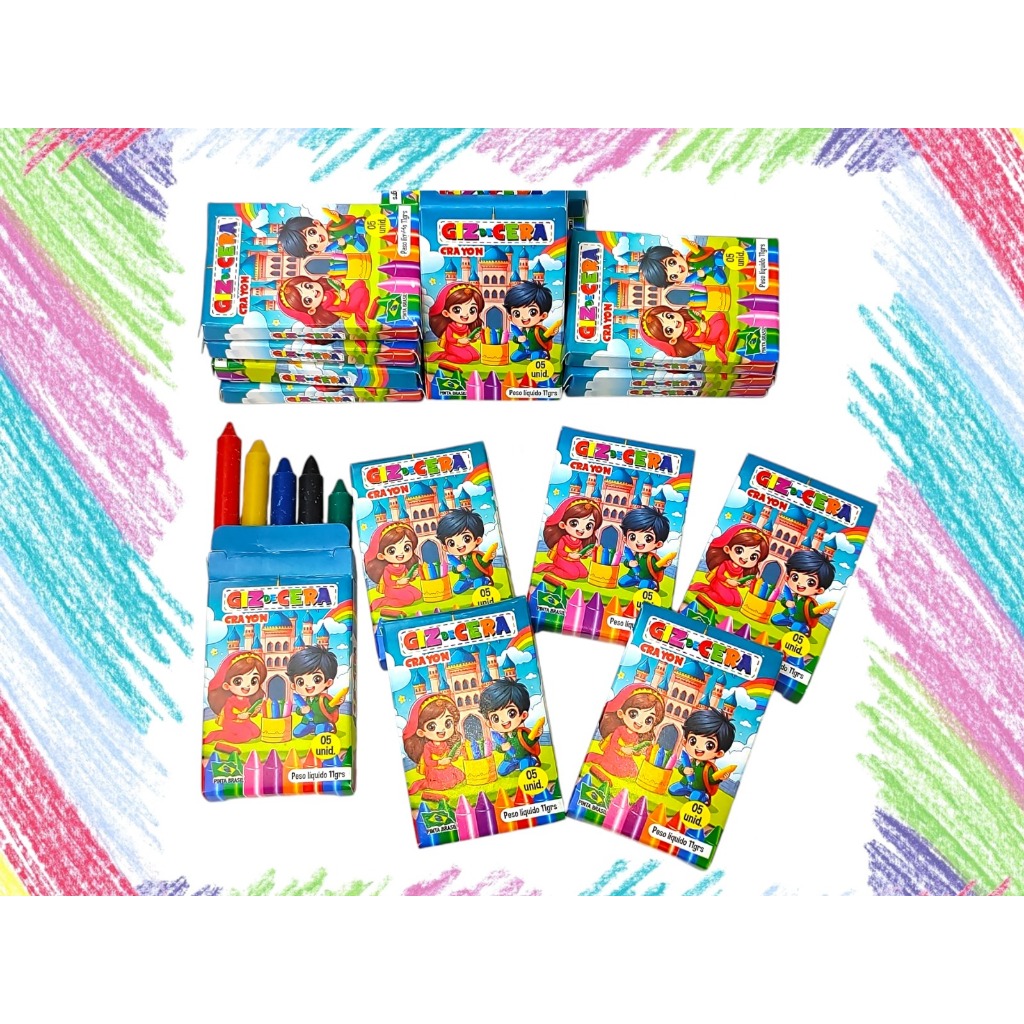 14 Cxs Giz De Cera Pequeno 5 Cores 5 Cm para Lembracinhas Festas Aniversario Prenda Quermesse novo